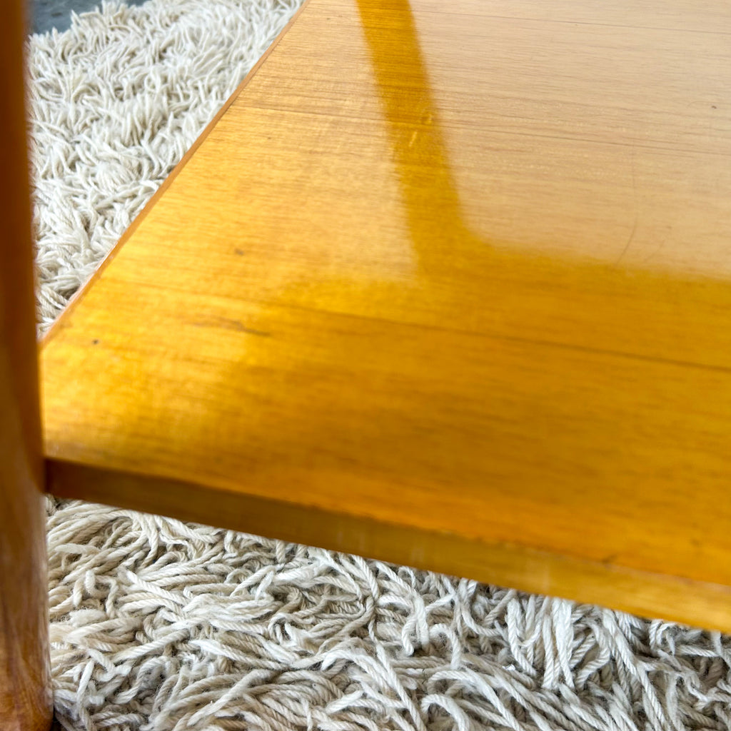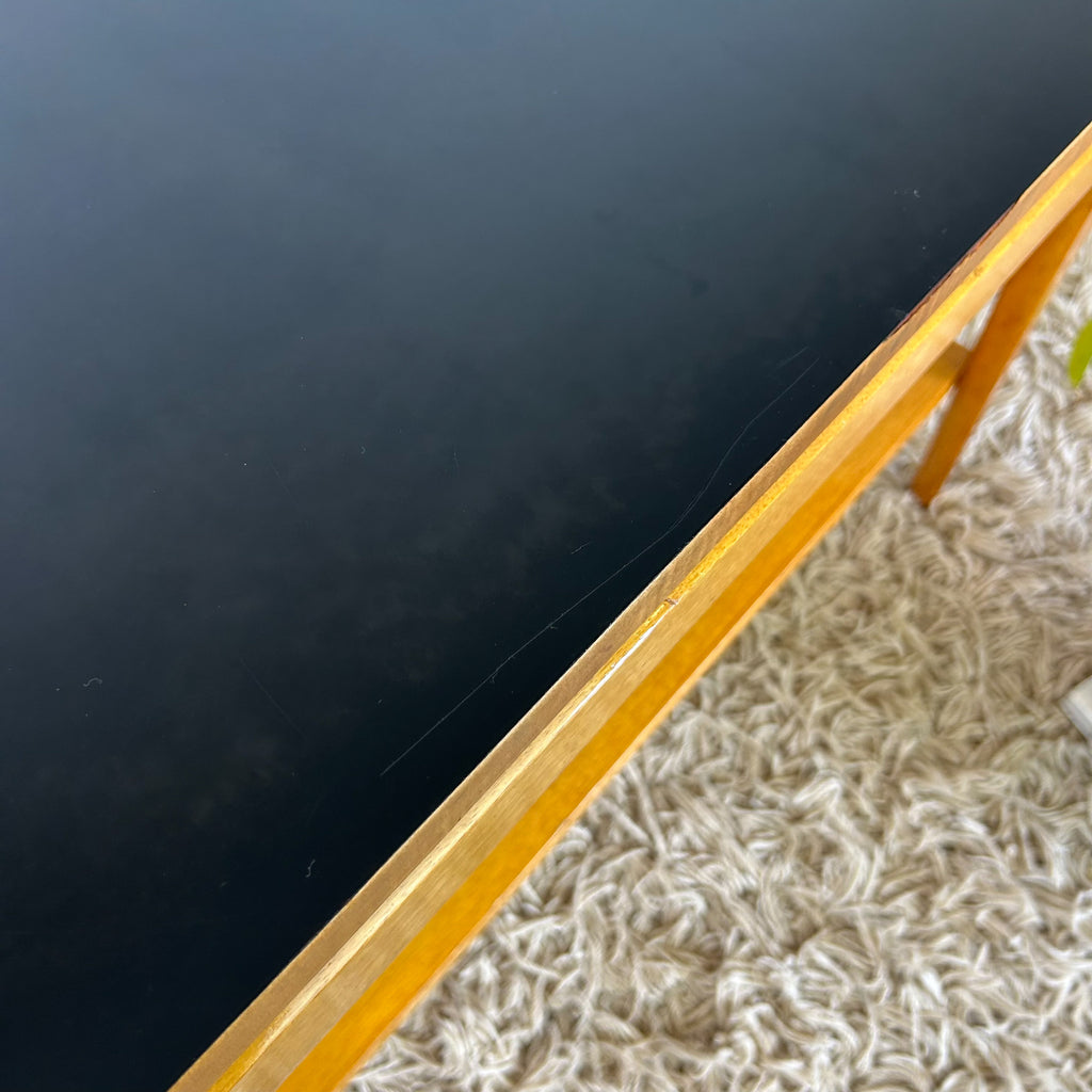 Excellent condition. A few light scuffs and a couple of scratches on the tabletop, not overly noticeable. There's a chip to the veneer that runs around the edge of the tabletop. Very light wear elsewhere. See pics for details.