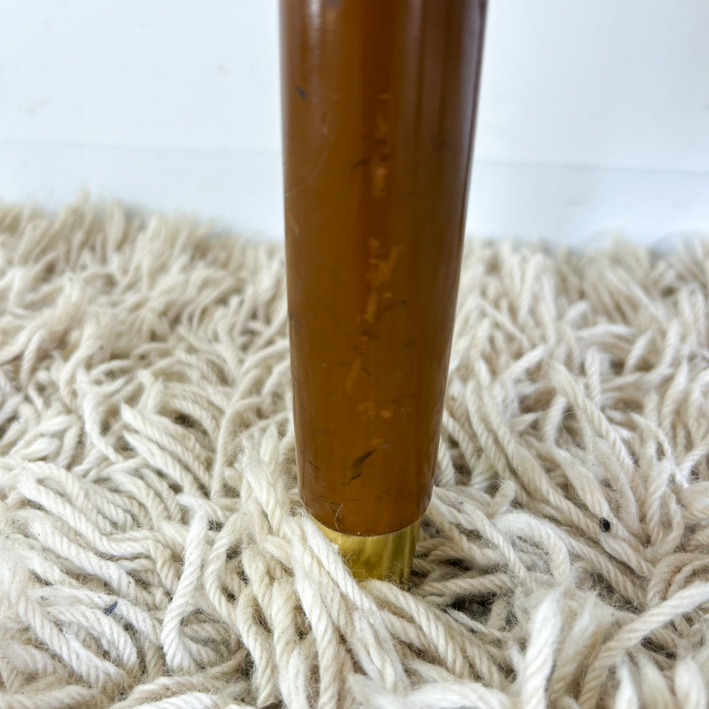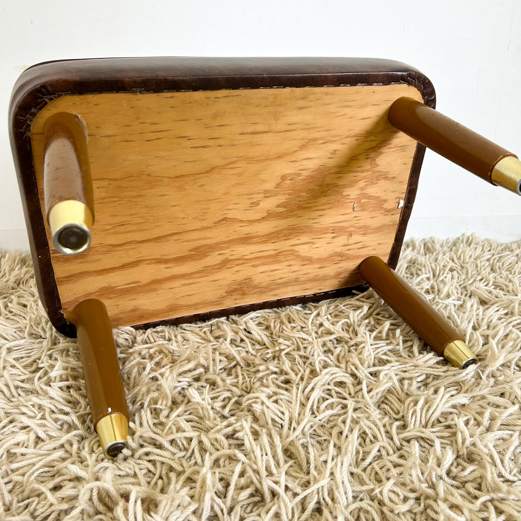 Vintage 70s footrest. Brown vinyl top with embossed pattern on top. Faux wooden legs.