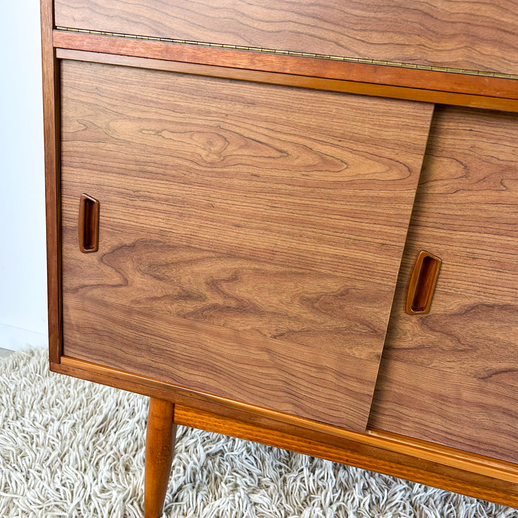 Vintage cocktail cabinet made in Preston, Melbourne by Chatley Productions. High quality laminate with timber trims, recessed handles and tapered legs.