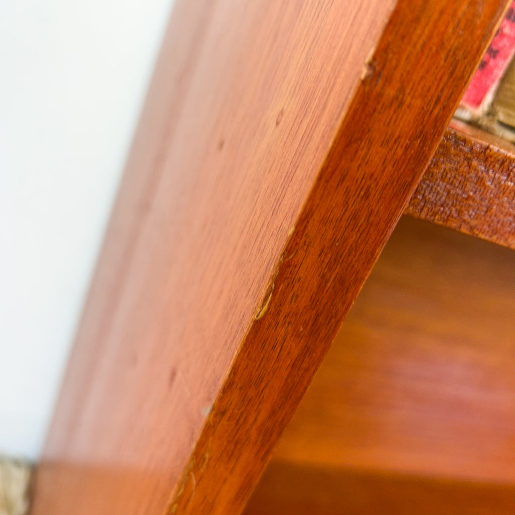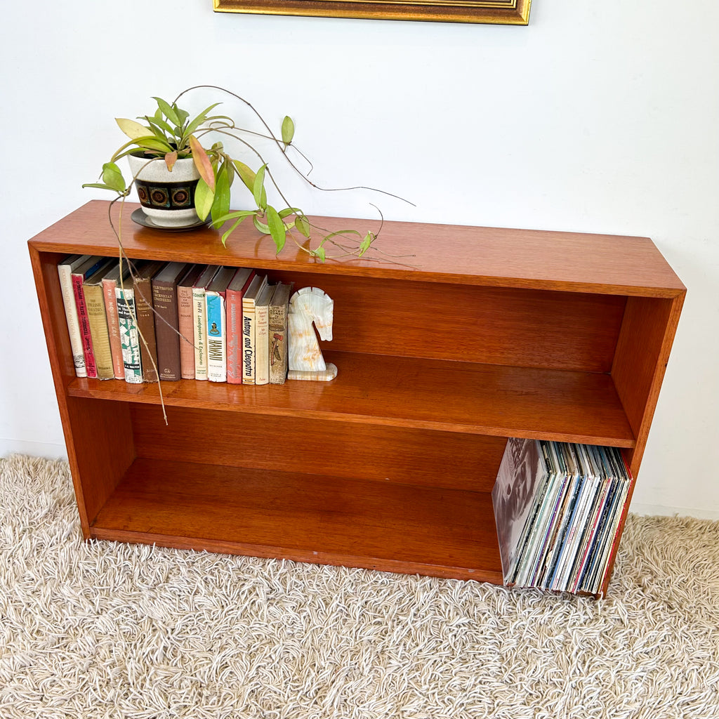 Vintage bookcase made from solid hardwood timber. It's a good size and will store loads of books or vinyl! (Only the bottom shelf is tall enough for 12" records)