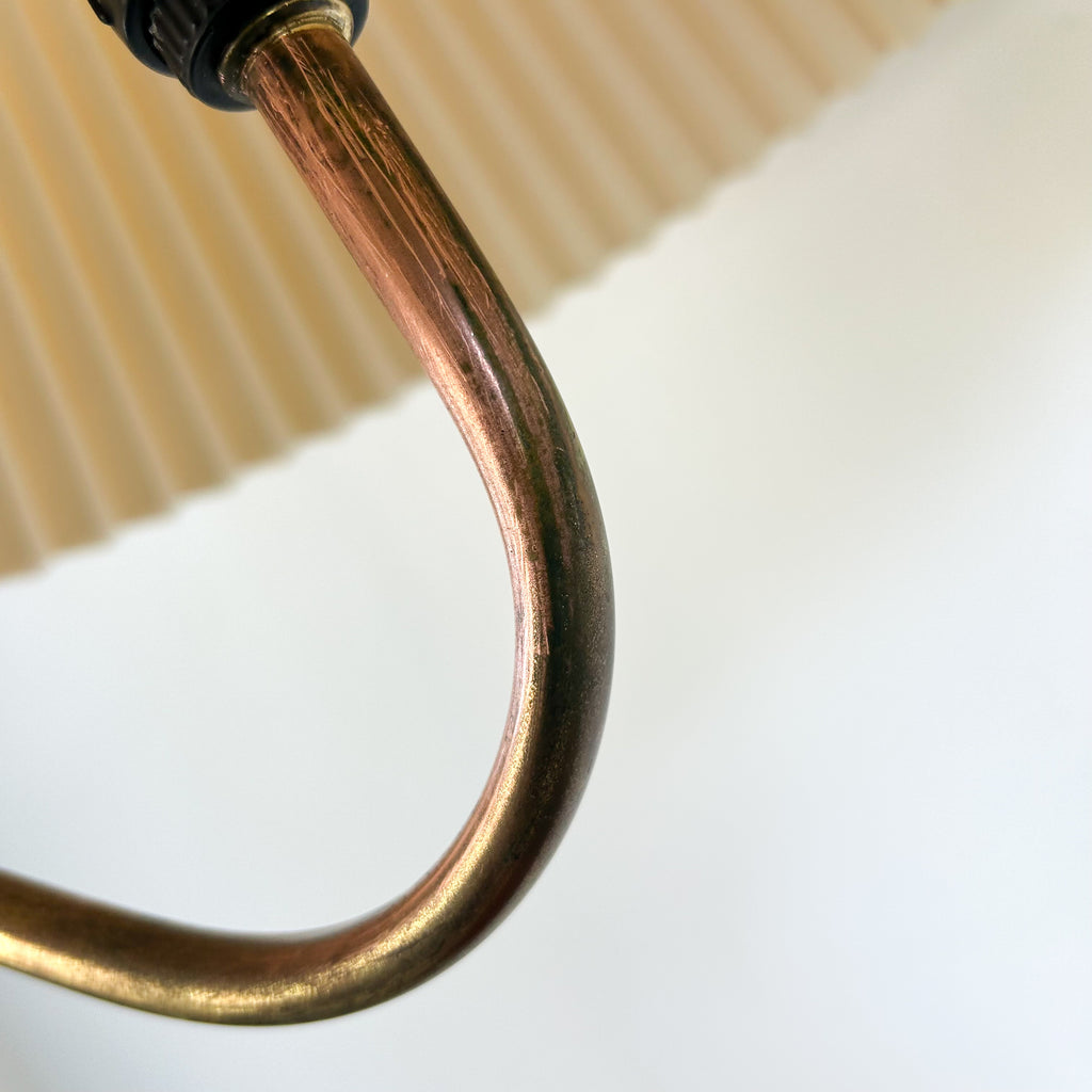 Great working condition. A little wear to the brass finish on the lamp base, see pics. A few light scuffs.