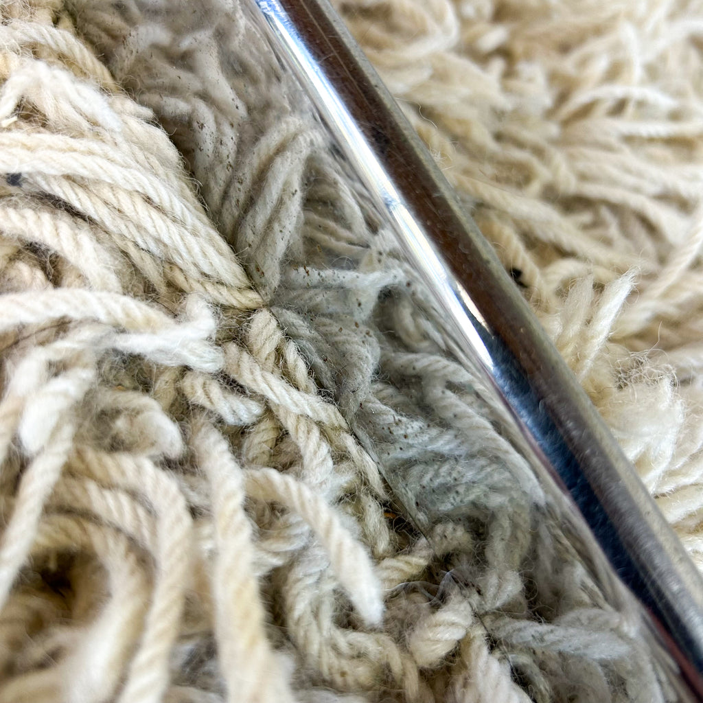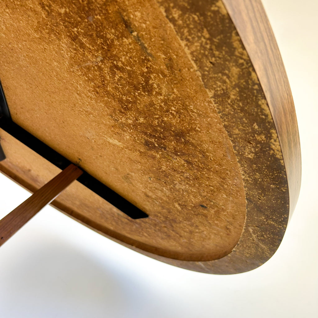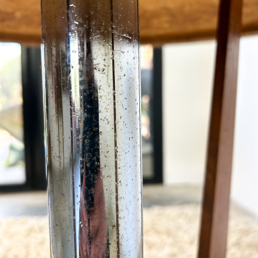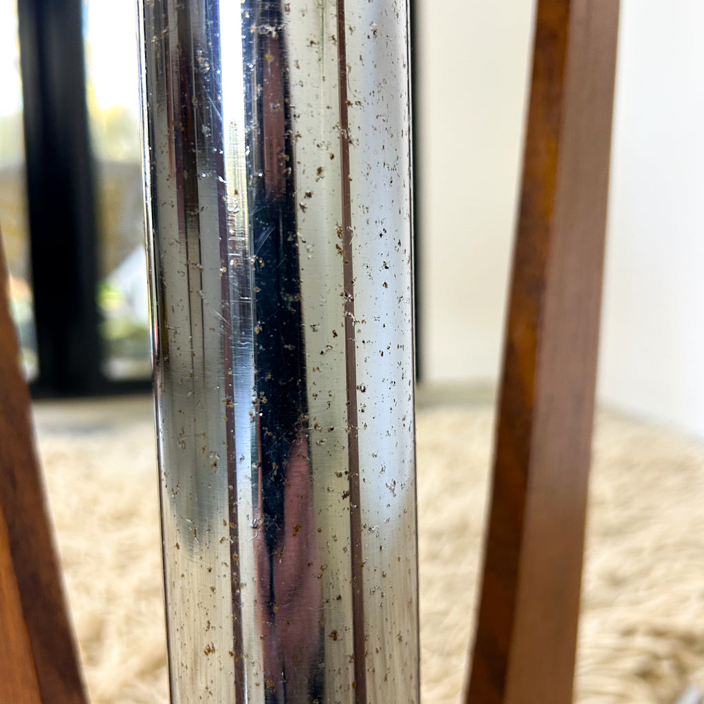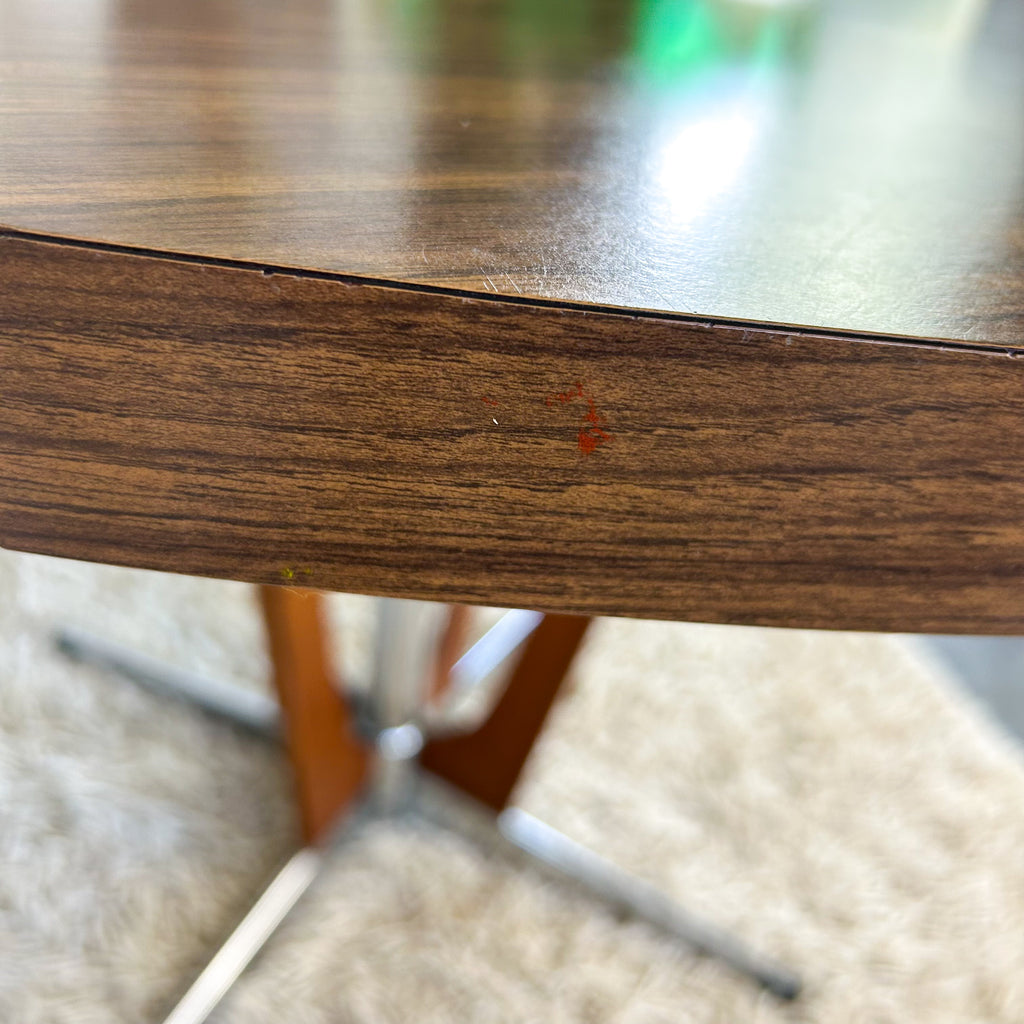 It's in great condition, but not perfect. The chrome has a little rust. The plastic feet are a little worn. There's a few tiny chips to the laminate top around the edges. But it's an iconic table nonetheless.