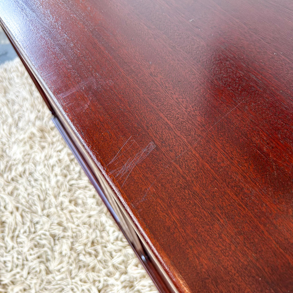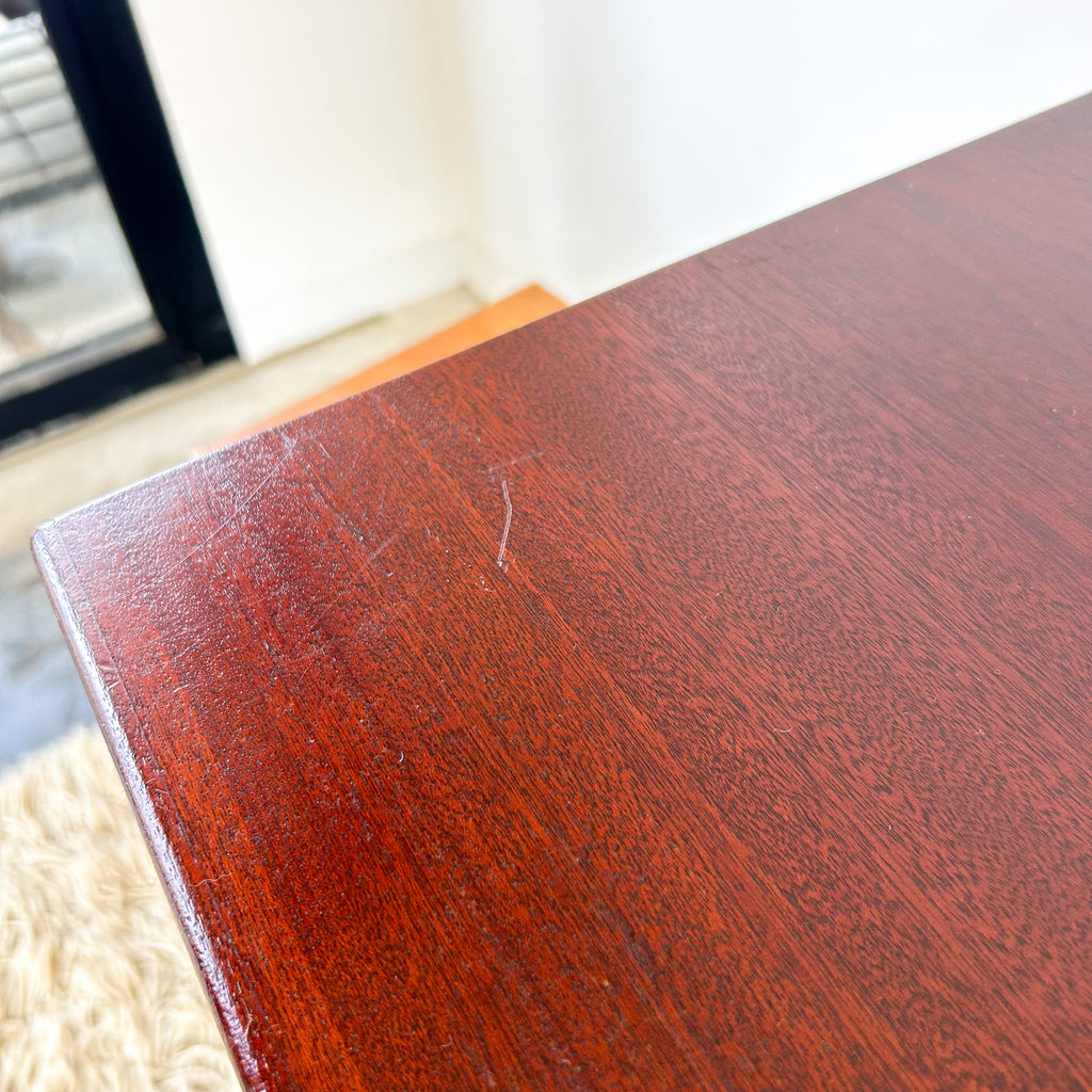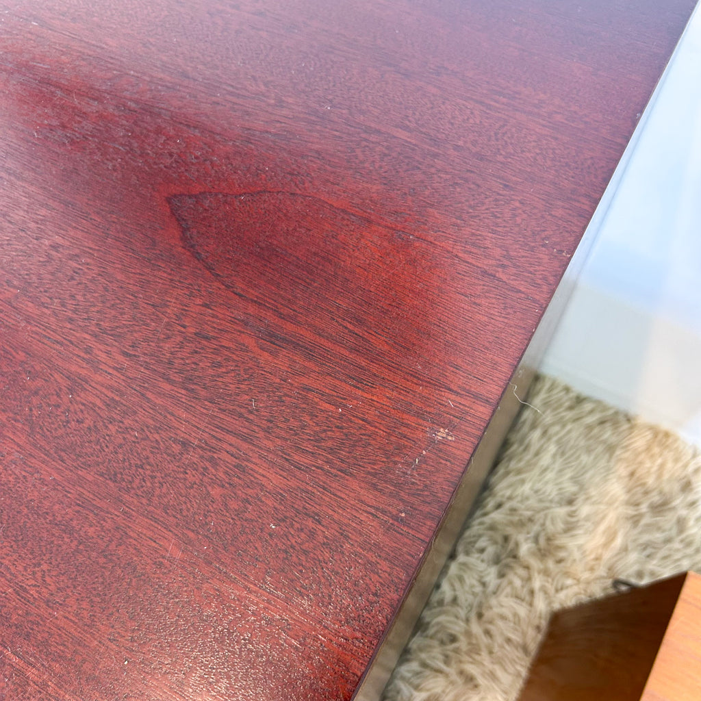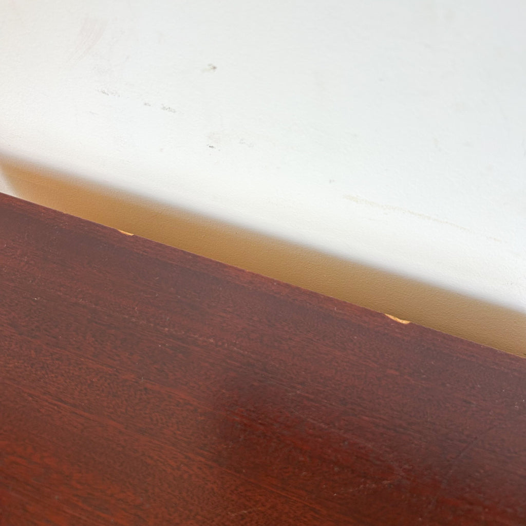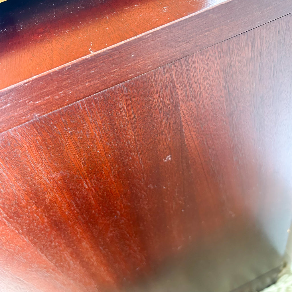 It's in very good condition. Light scuffs on the shelves inside and on the top surface. And some small veneer chips, mainly at the back.