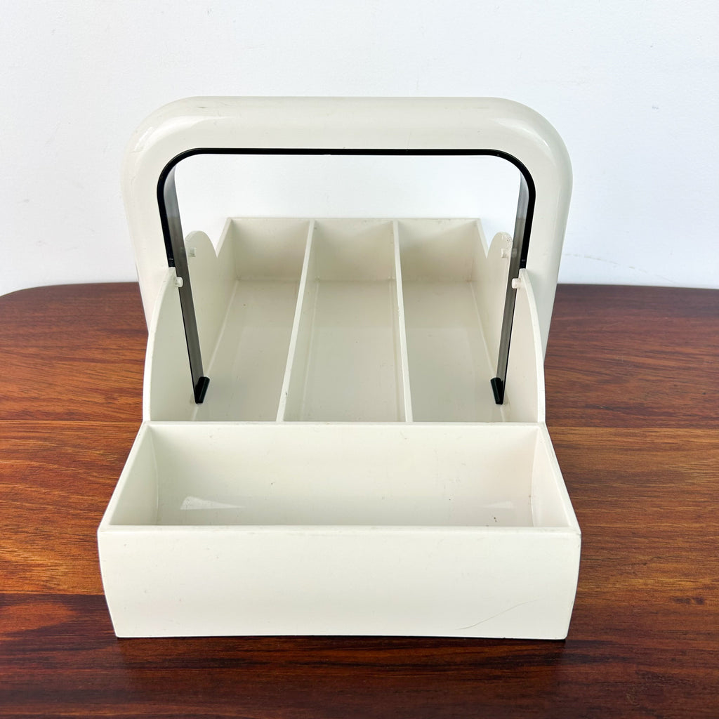 Vintage white plastic cutlery tray, made in Italy. From the 1980s Papillon series designed by Furio Minuti for Guzzini.