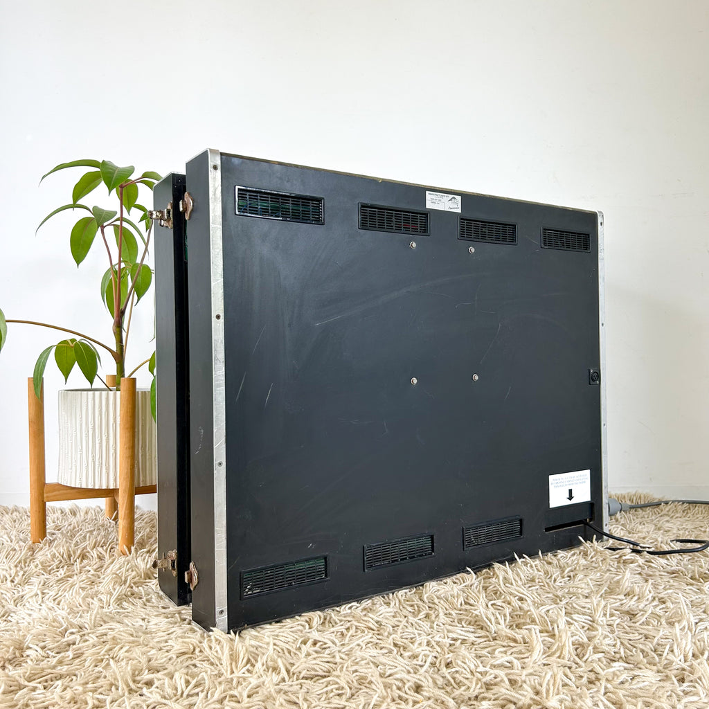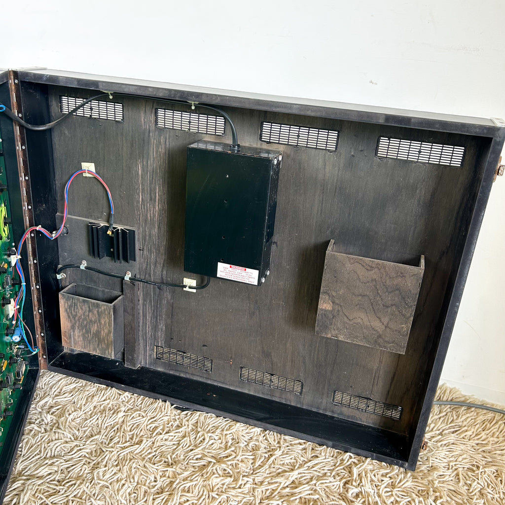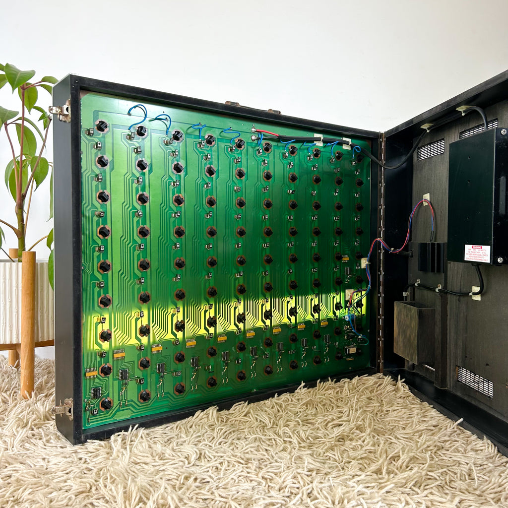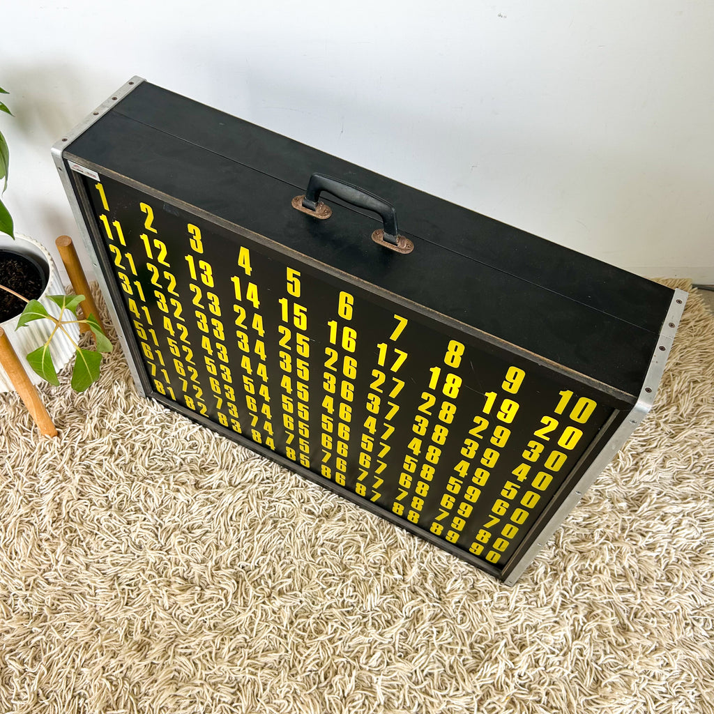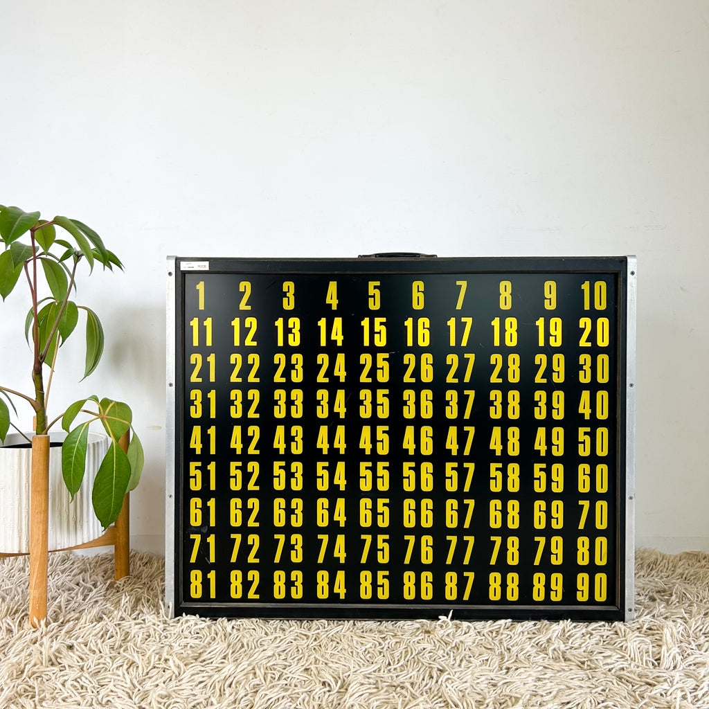 Unique vintage bingo board. The numbers light up in complete rows and cycle through each row at a time. It is missing the control panel that would have plugged in to light up individual numbers (& to actually play bingo). Nevertheless, it's an incredibly cool display or decorator piece. Totally portable, plug it in anywhere.