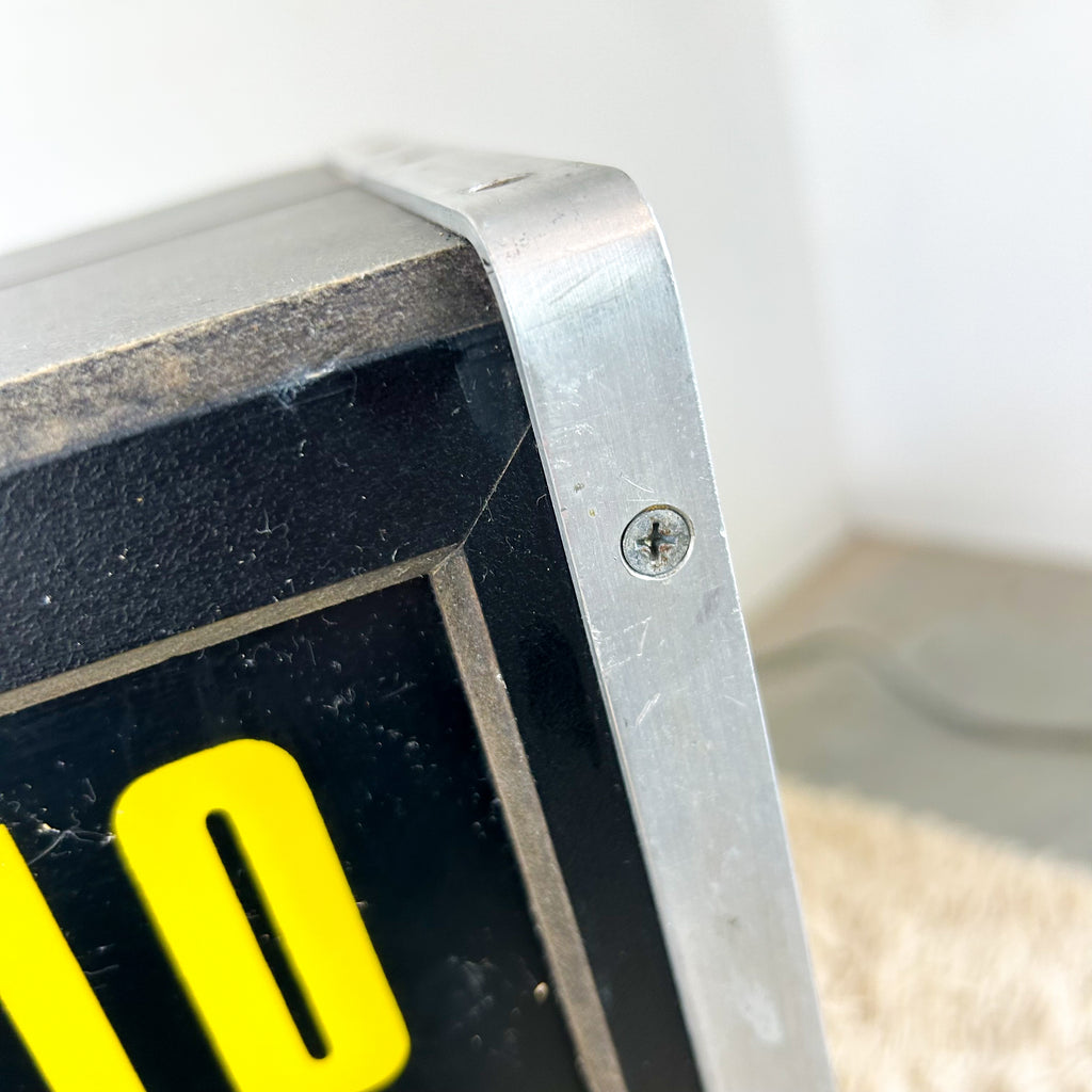 Excellent working condition. Some light scuffs to the vinyl case and a few on the front numbers. The clasps and handle have a little rust. All the numbers light up, however also comes with spare globes.