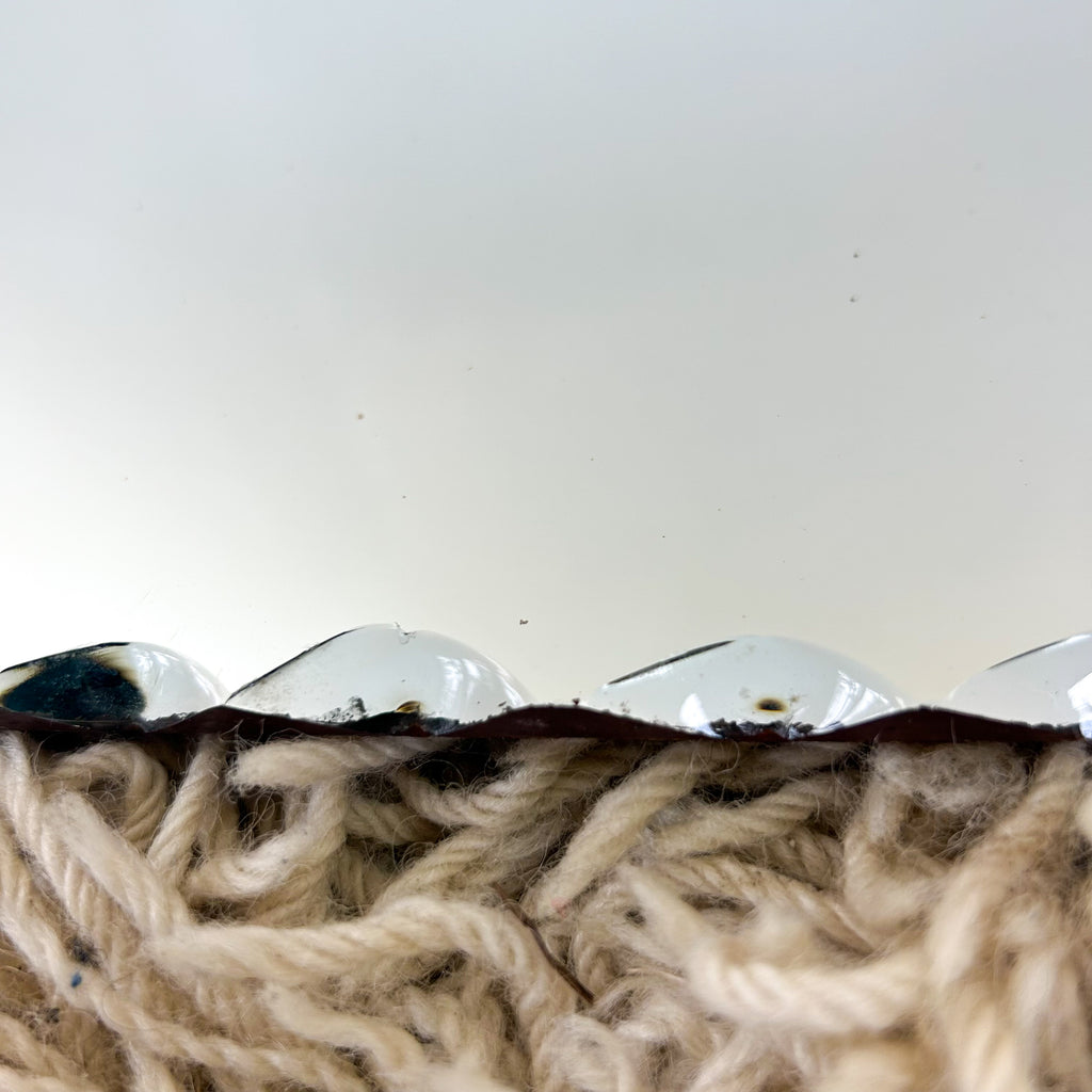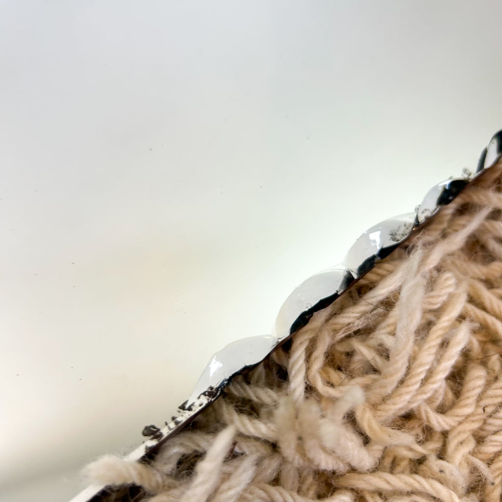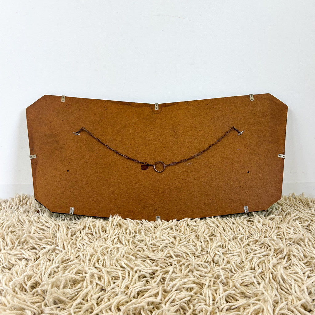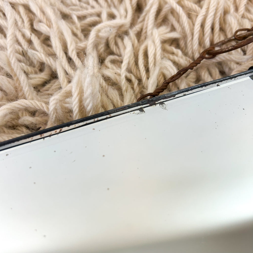 Vintage V shaped mirror with pie crust detail at the bottom. Chain on the back for hanging.