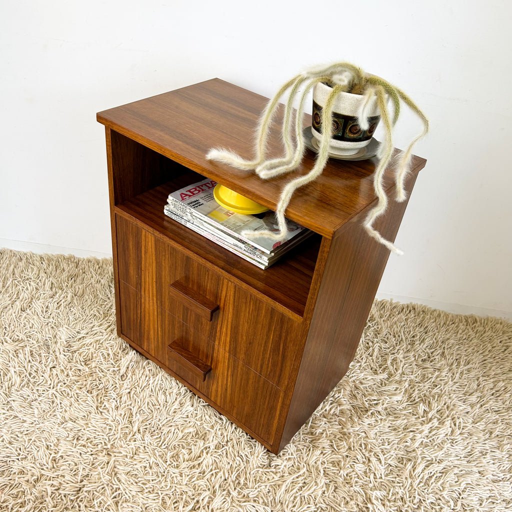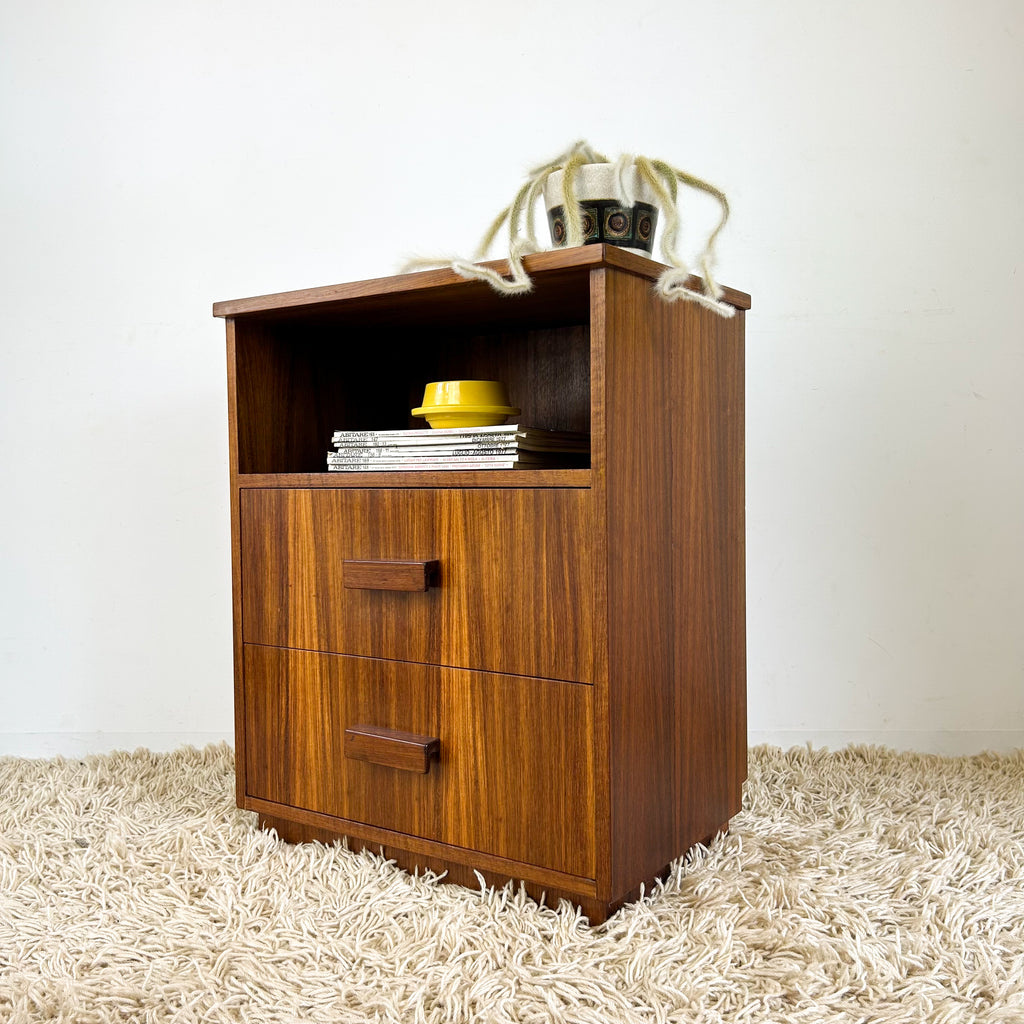 Vintage oversized bedside table, featuring open shelf and two large/deep drawers with dovetail joinery. Veneer drawer fronts with solid timber body, it's heavy! The unit is quite large and could really be used in any room of the house!