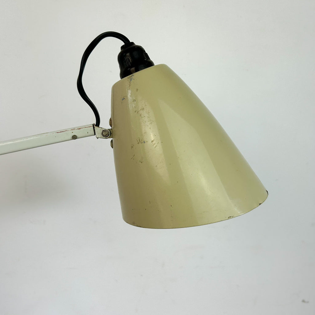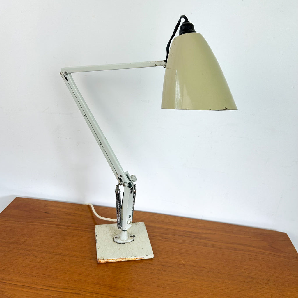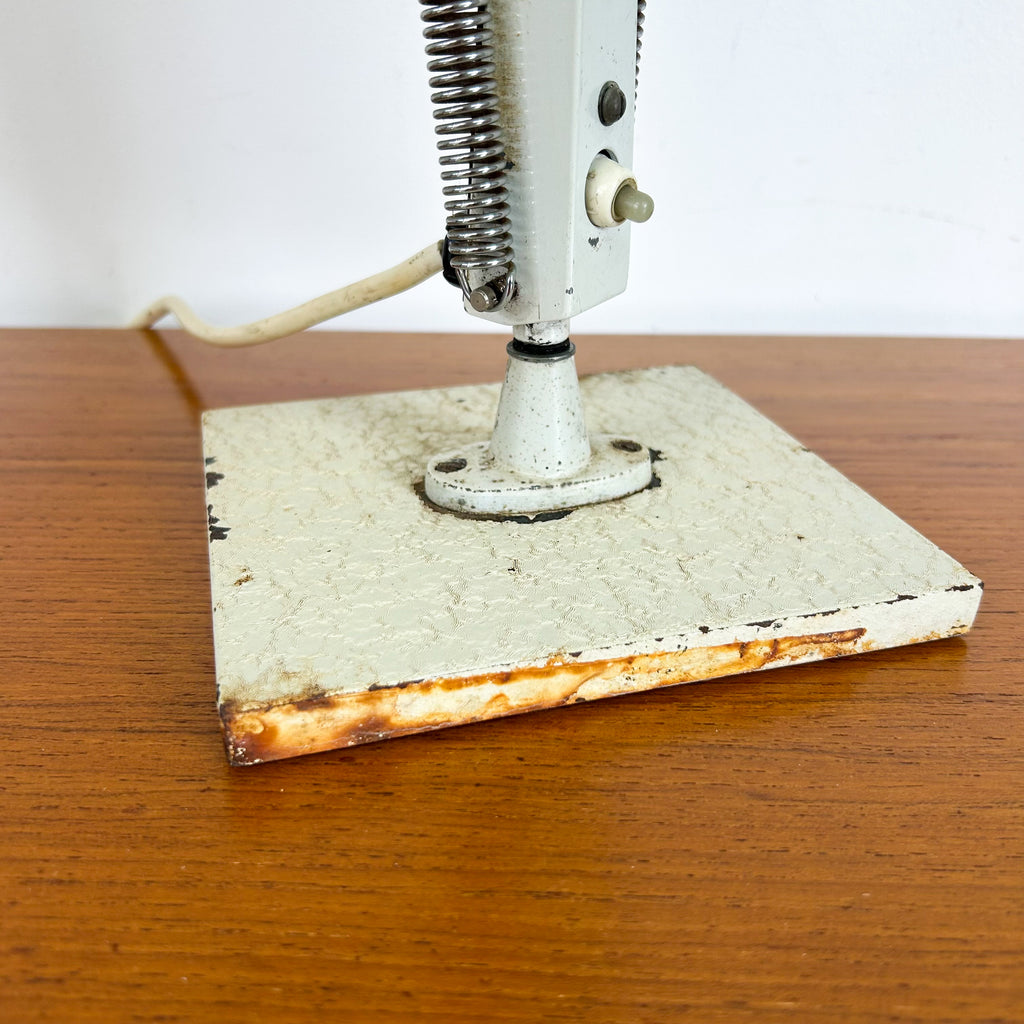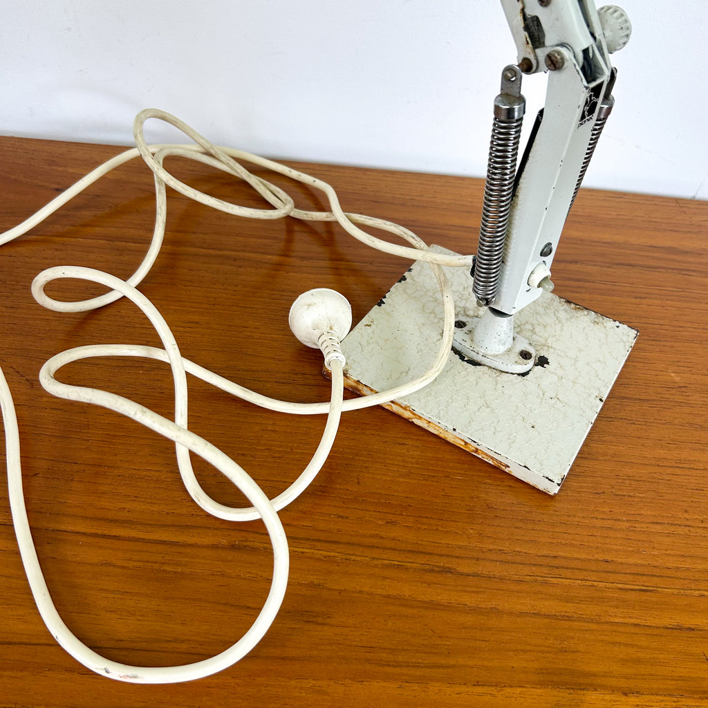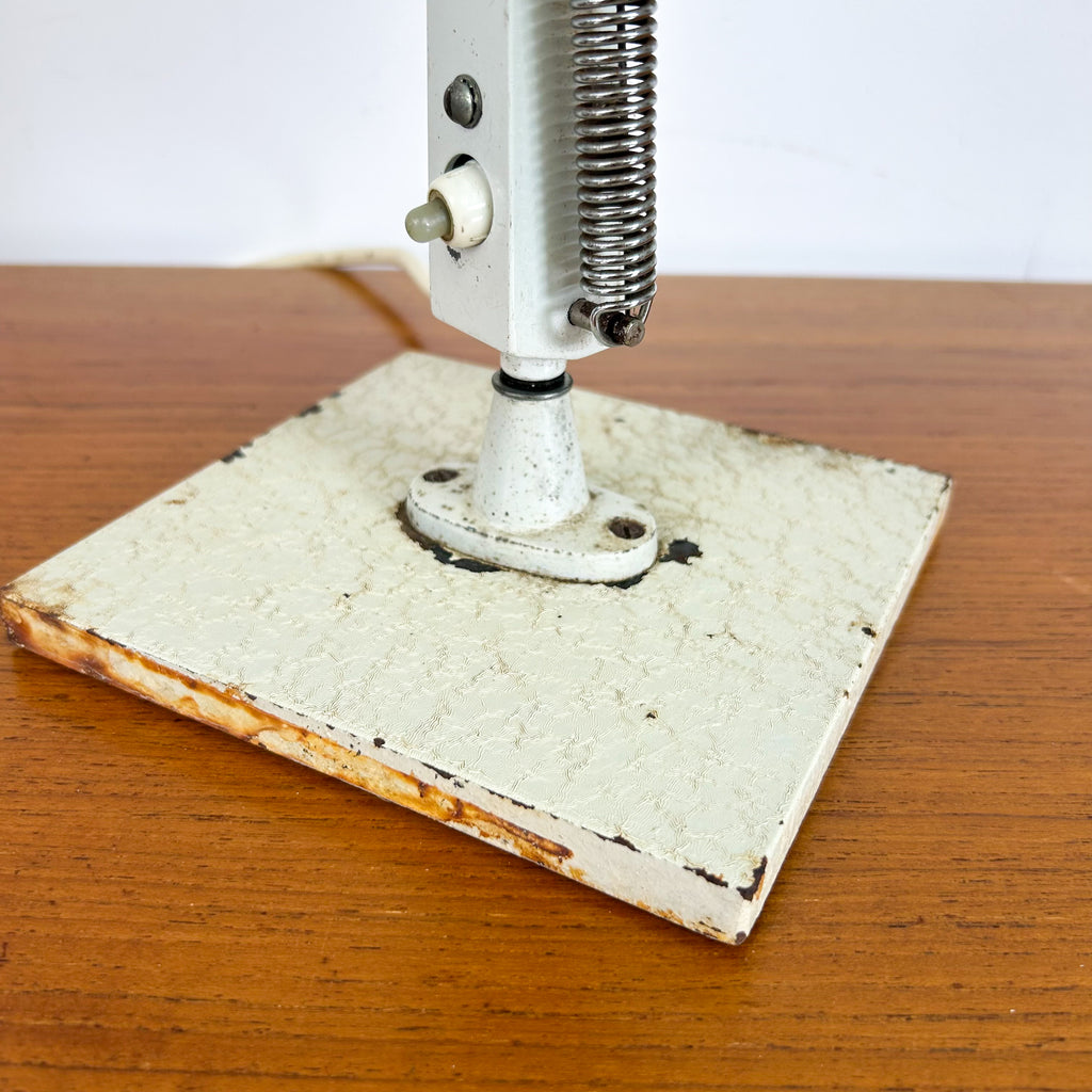 Vintage Studio Model K desk lamp by Planet in cream. An Australian industrial classic, designed in 1962 by Bill Iggulden, these lamps were favoured by the mid century architects of the era. Made in Australia, these have a very heavy base.
