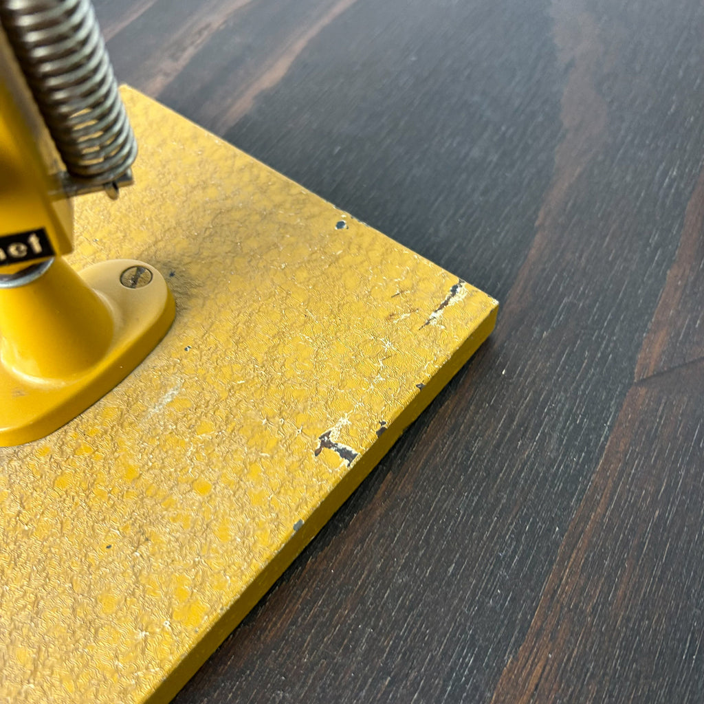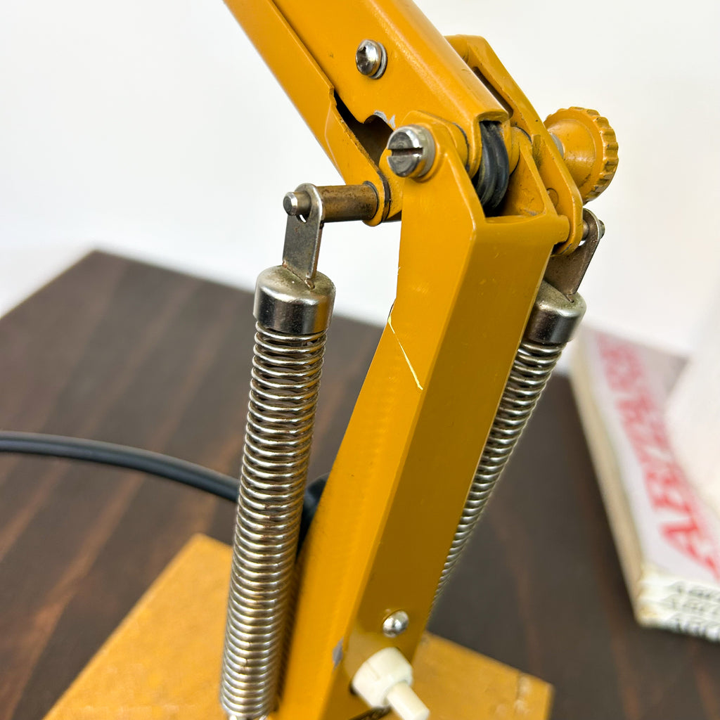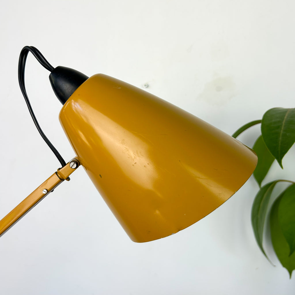Vintage Studio Model K desk lamp by Planet in mustard. An Australian industrial classic, designed in 1962 by Bill Iggulden, these lamps were favoured by the mid century architects of the era. Made in Australia, these have a very heavy base.