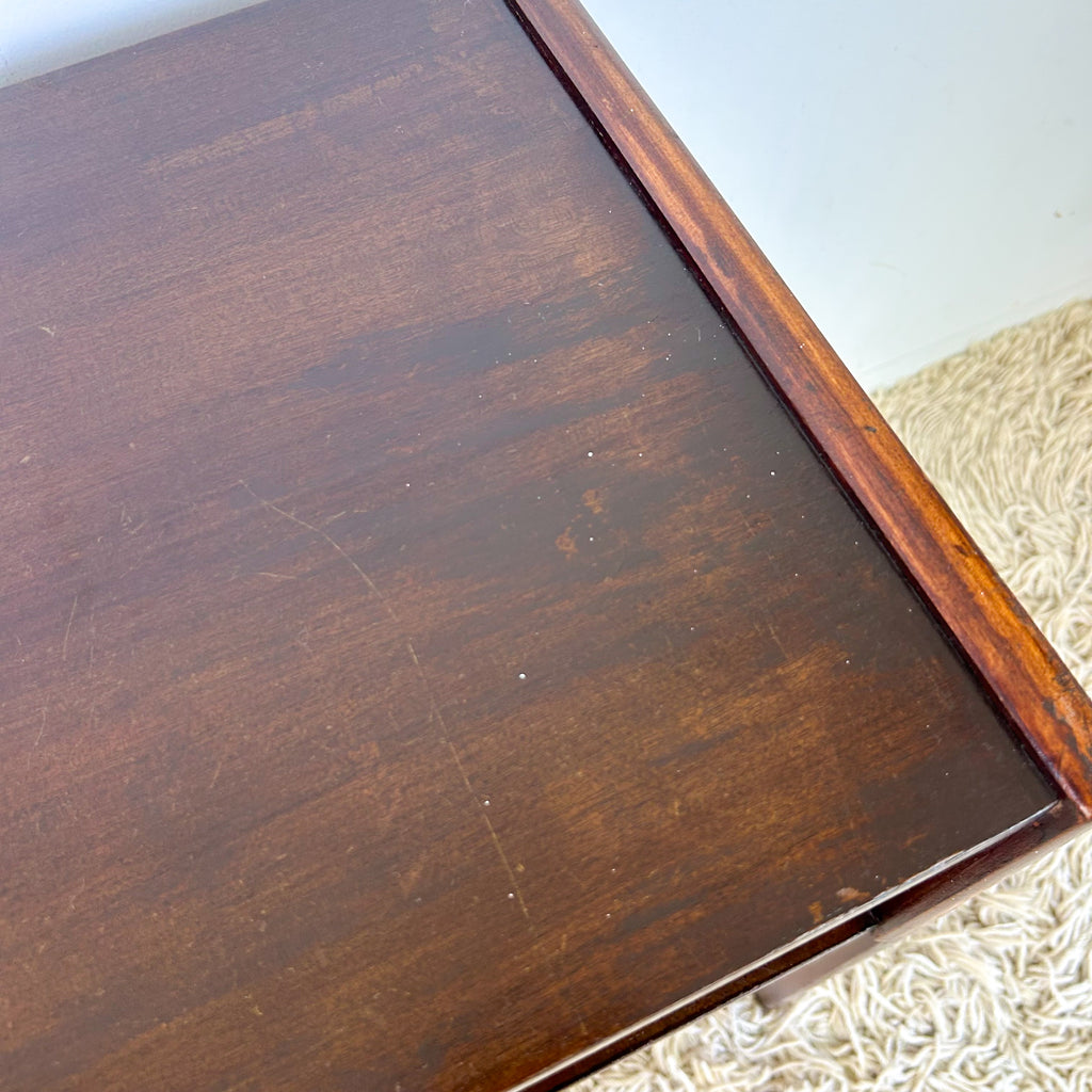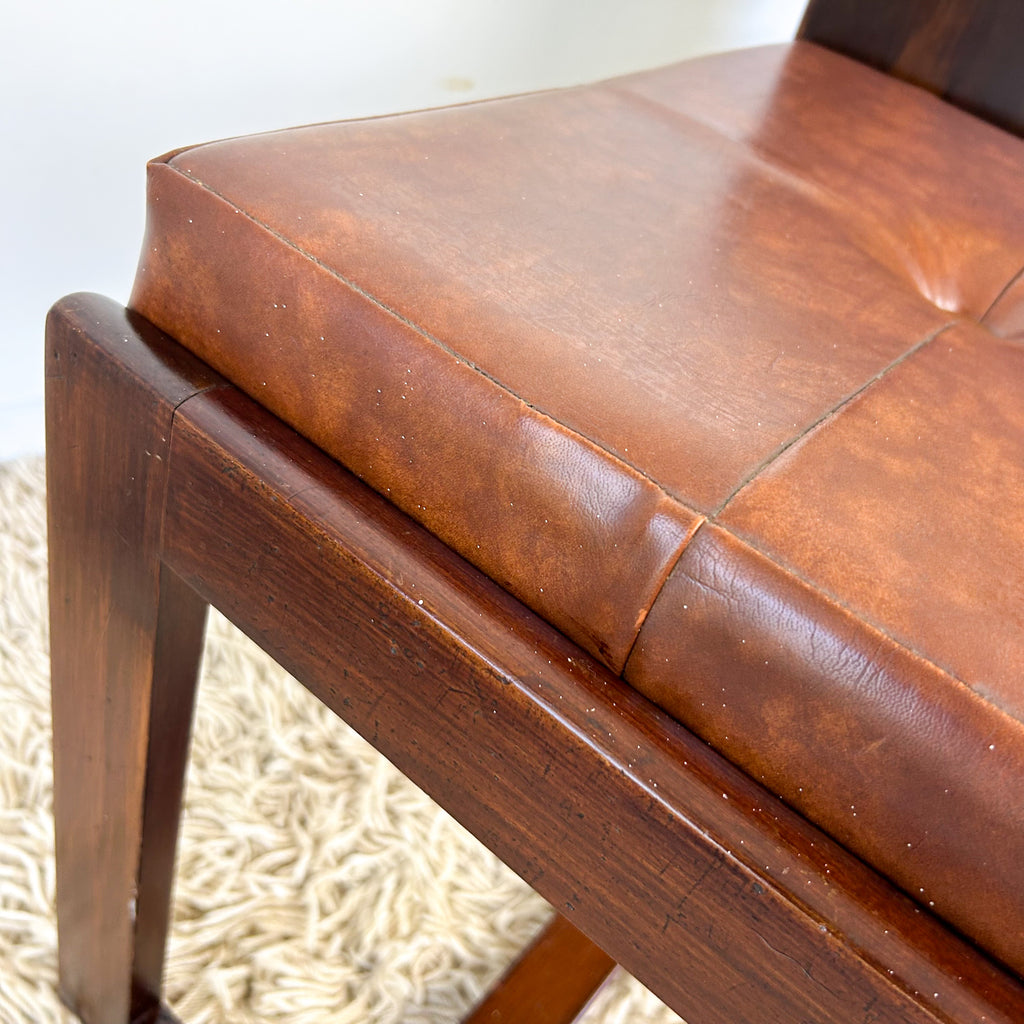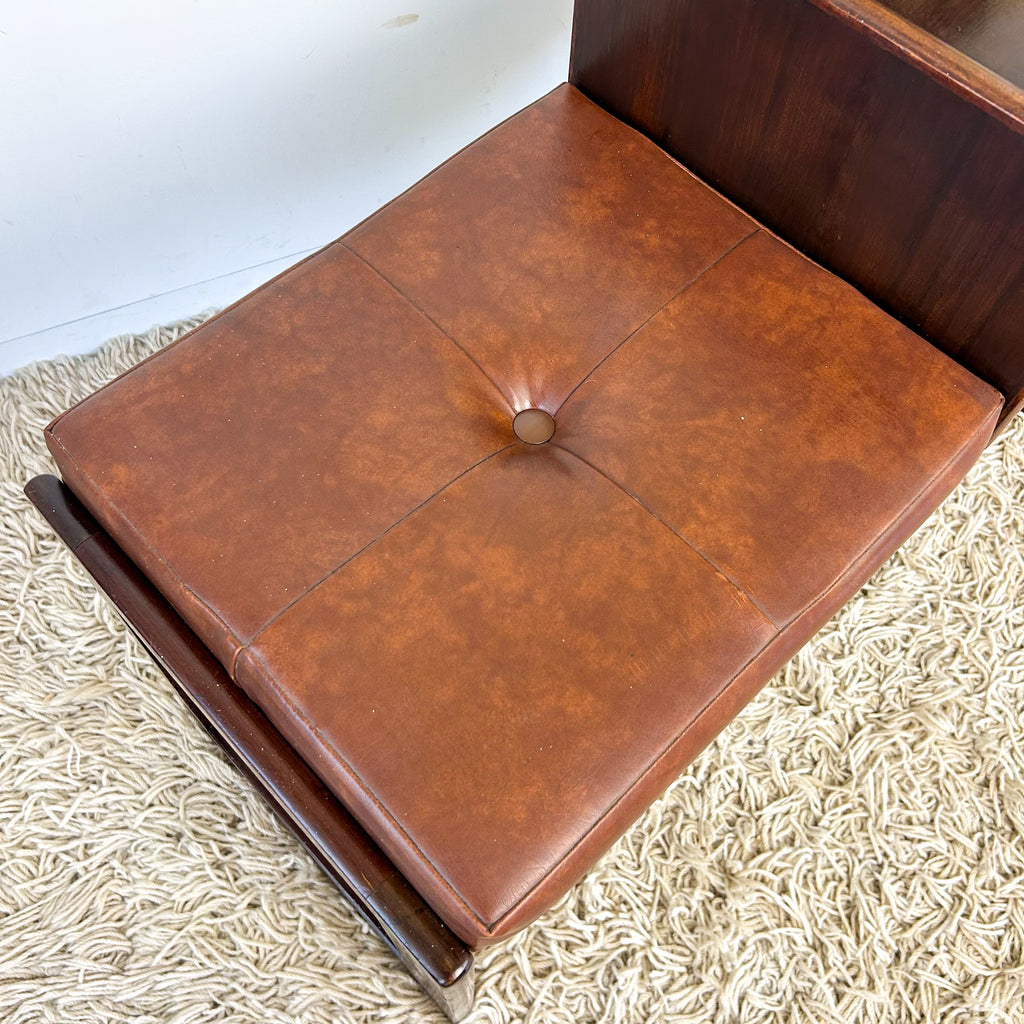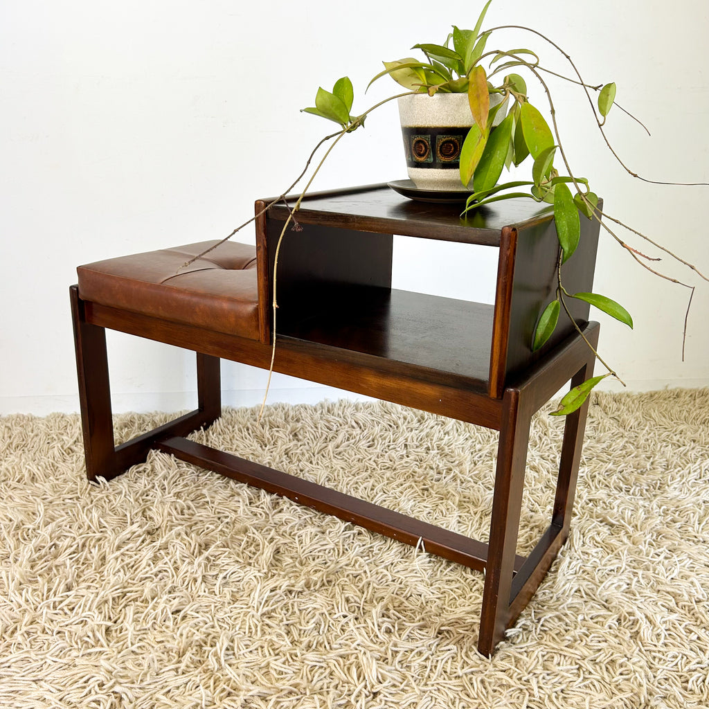 Vintage phone table. Timber sleigh base legs with brown vinyl seat. Great for a hallway/entryway, perfect to stop and take your shoes off/dump your keys etc.
