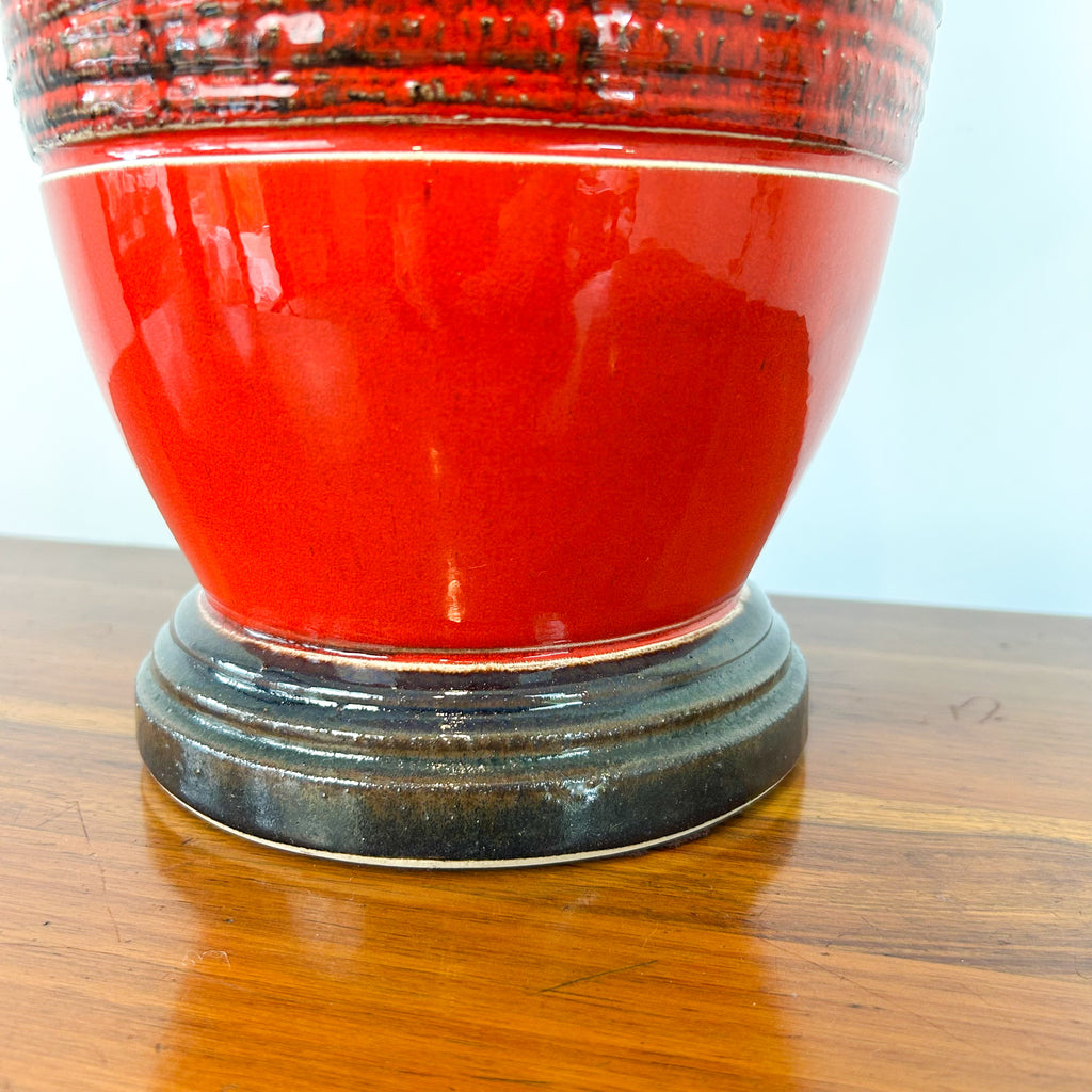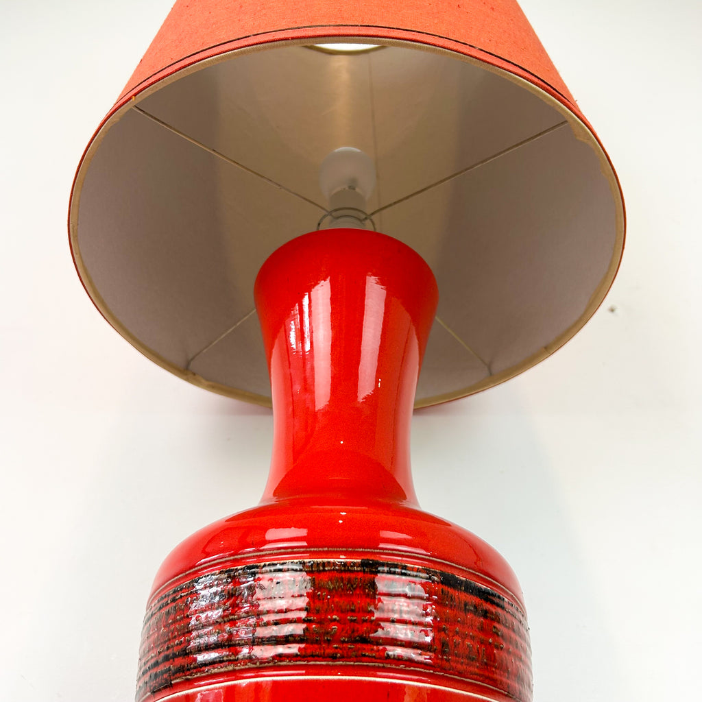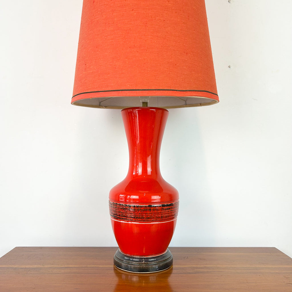 Extra large mid century lamp, red ceramic base with matching original red shade. It's enormous - check the measurements! Quite the statement piece, looks great as a floor lamp.