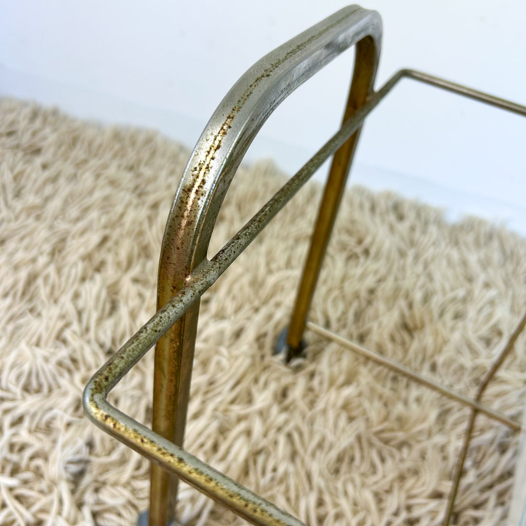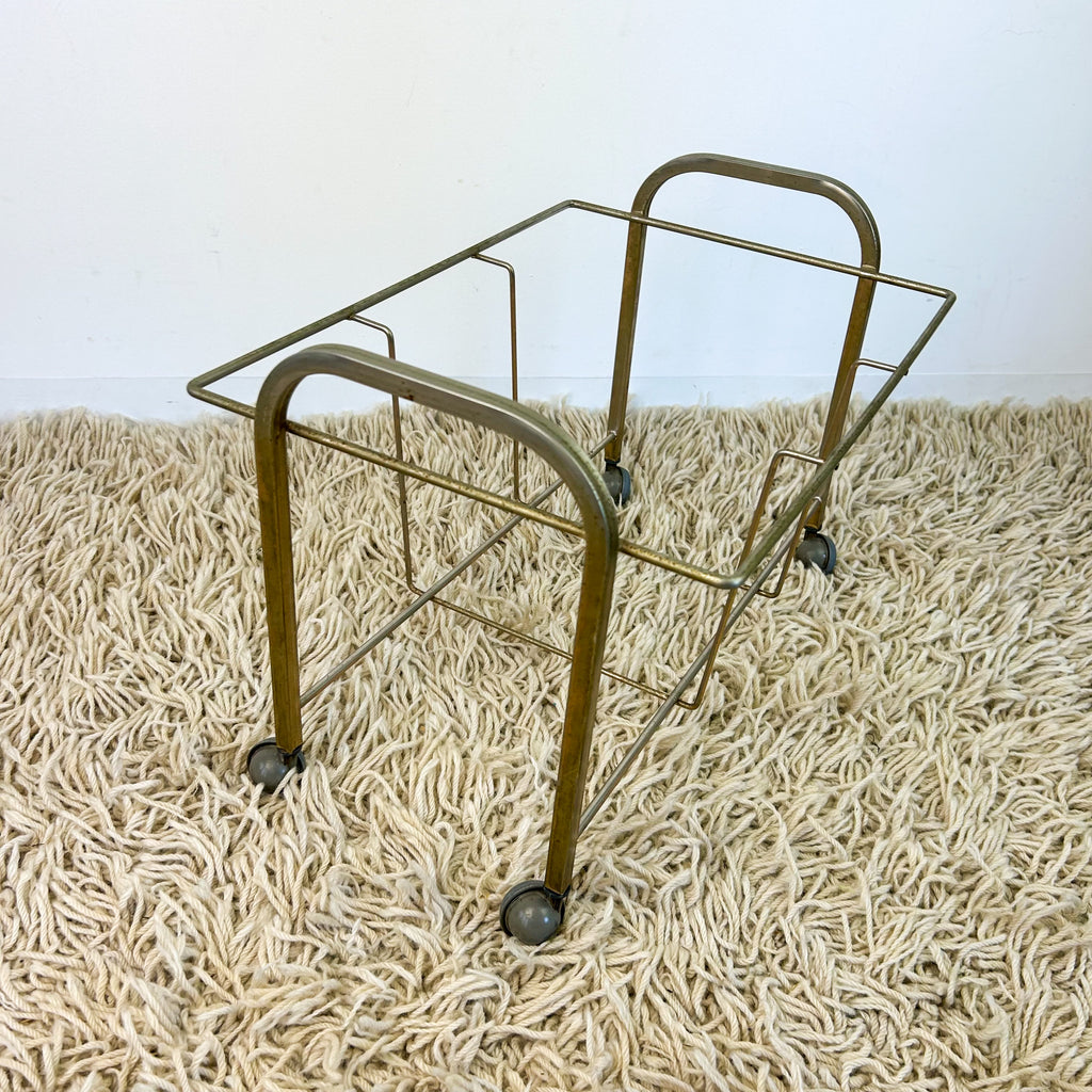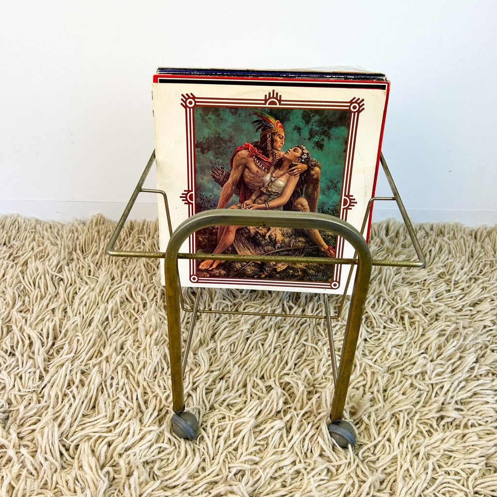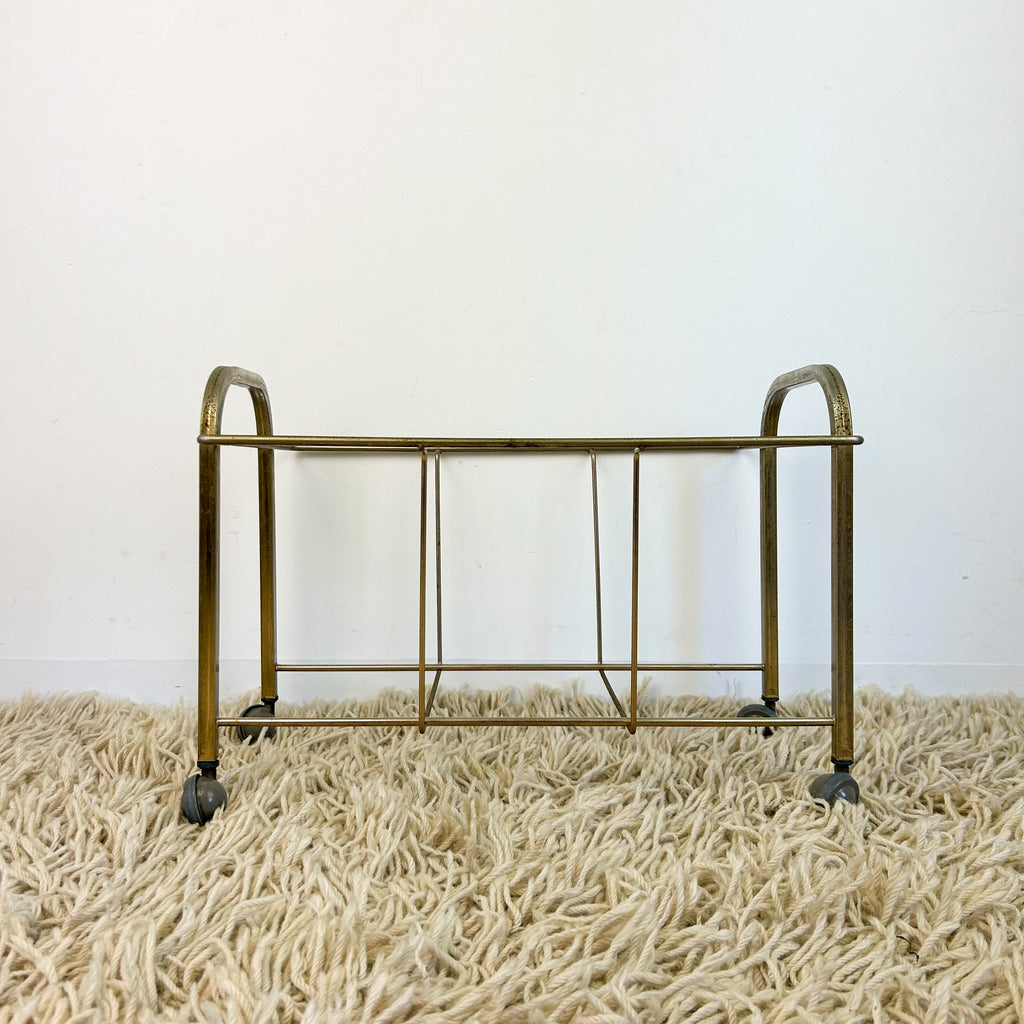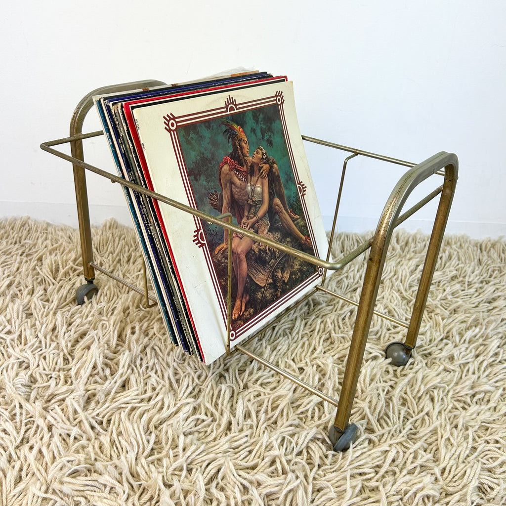 Vintage hollow brass vinyl record rack on castor wheels. Great storage - fits loads of records.