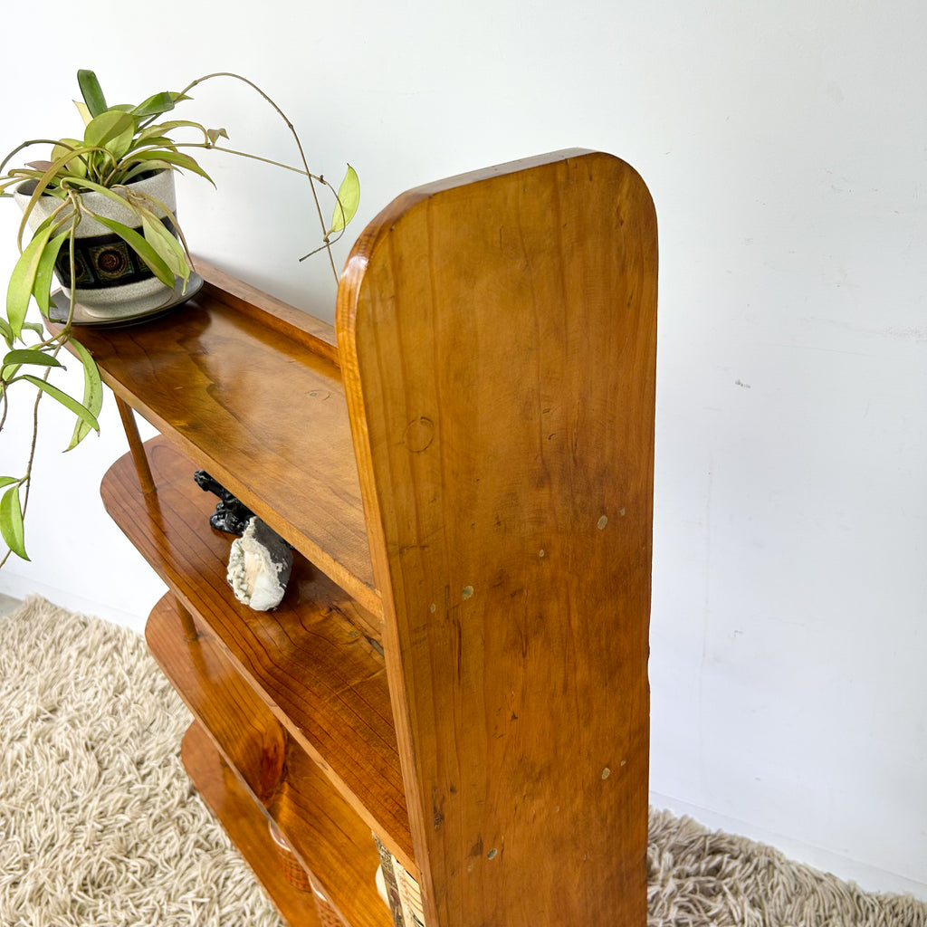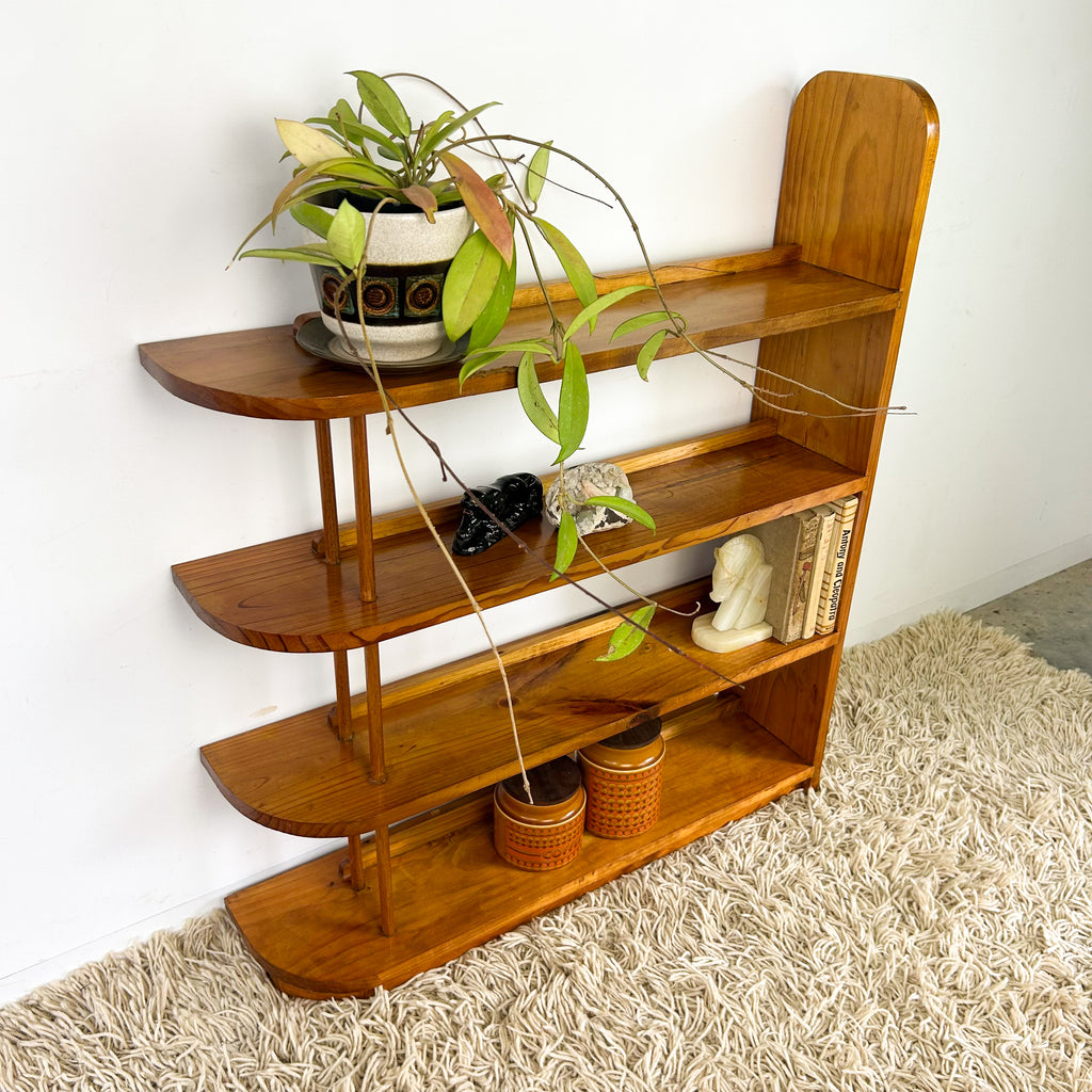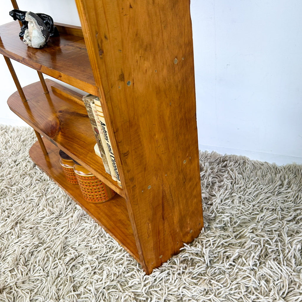 Vintage bookcase, open shelves with curved end pieces & spindle supports. Made from solid pine. Great art deco shape. Perfect for small books or as a display shelf for trinkets.