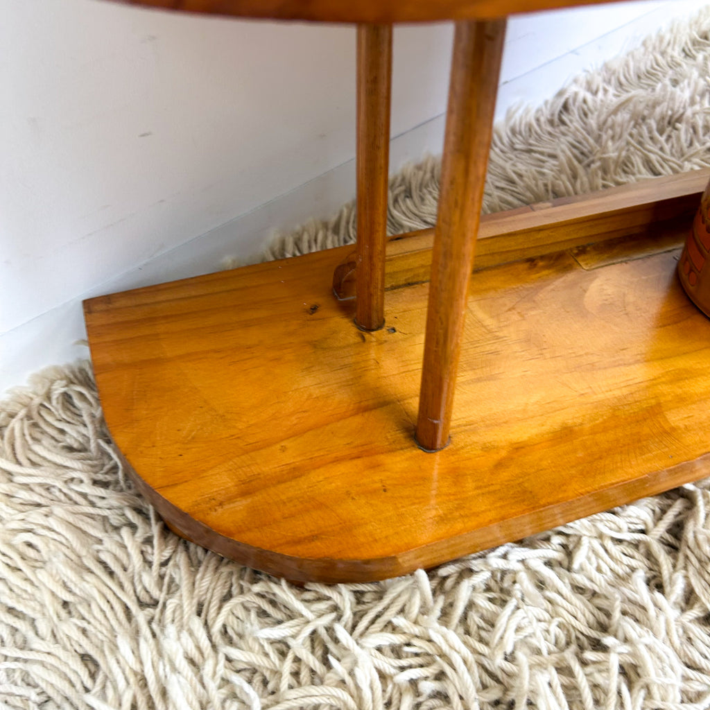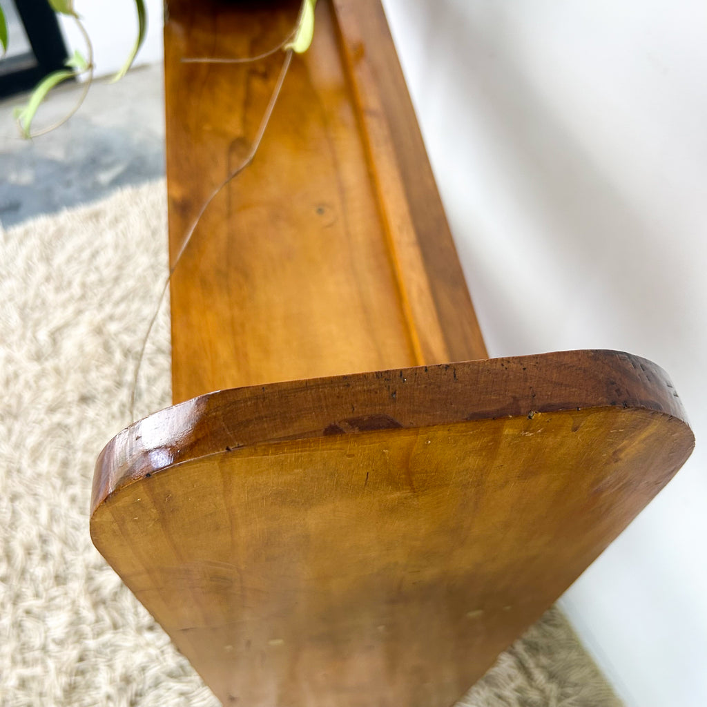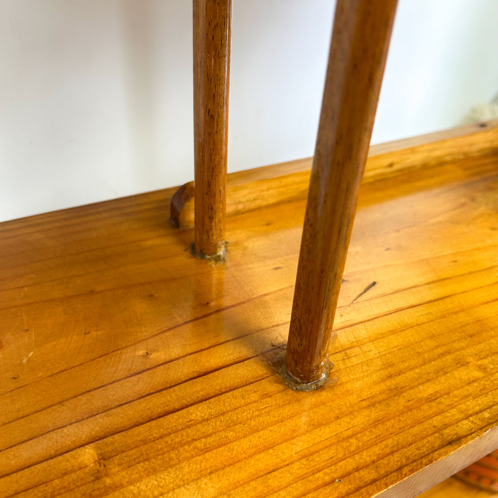 Vintage bookcase, open shelves with curved end pieces & spindle supports. Made from solid pine. Great art deco shape. Perfect for small books or as a display shelf for trinkets.