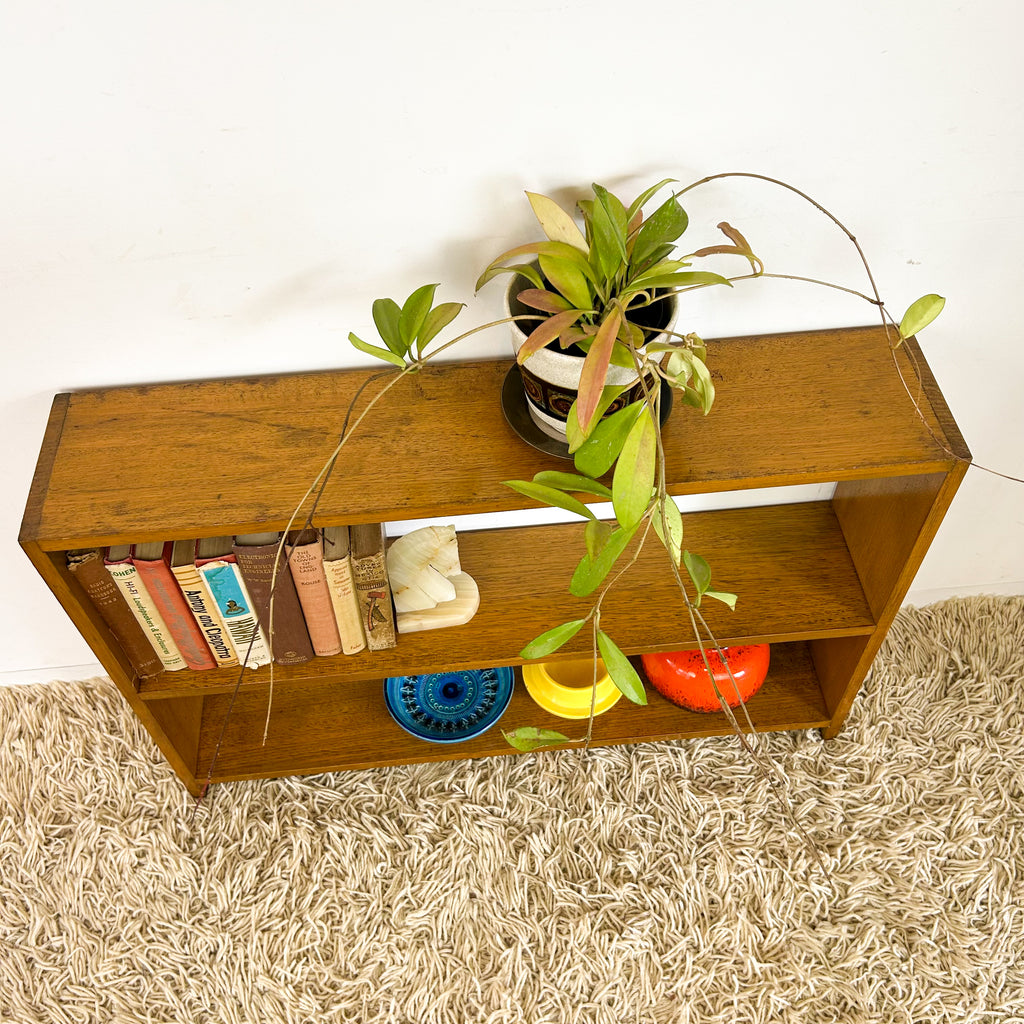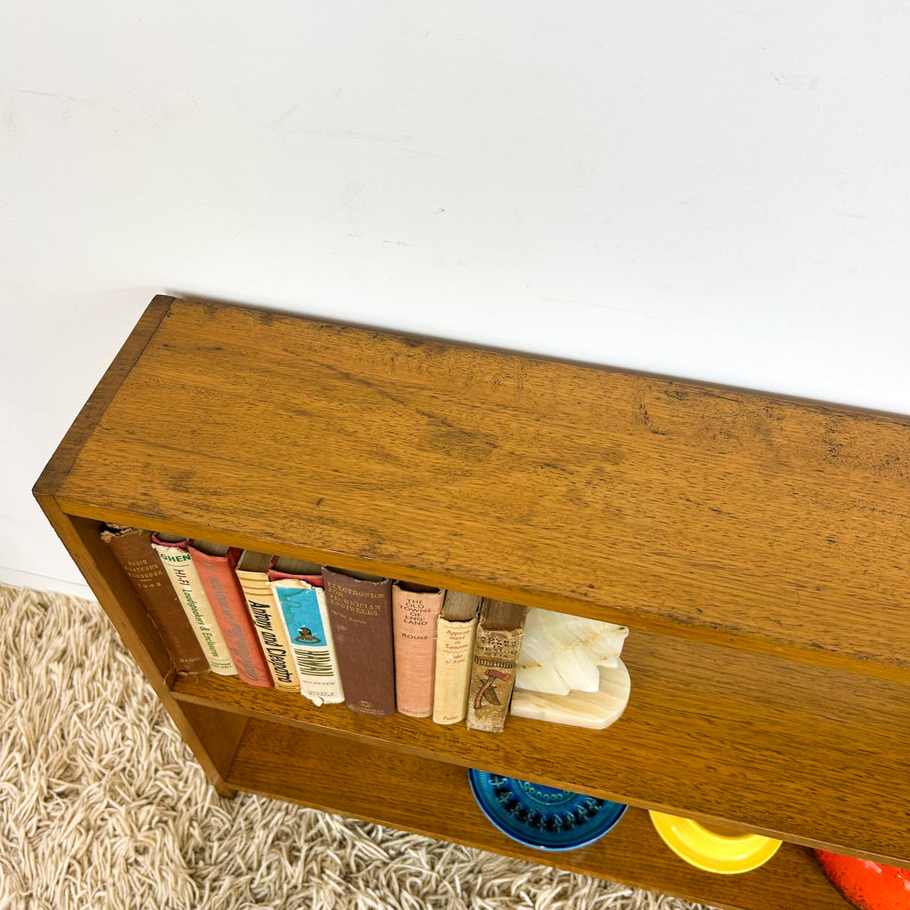 Vintage solid hardwood bookcase. A nice slim piece, great storage for a hallway or smaller spaces!