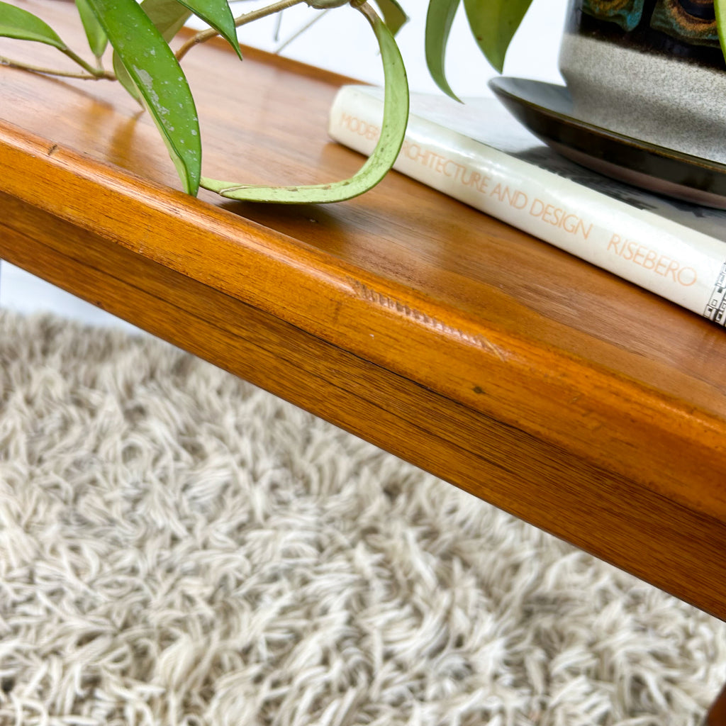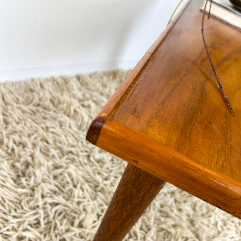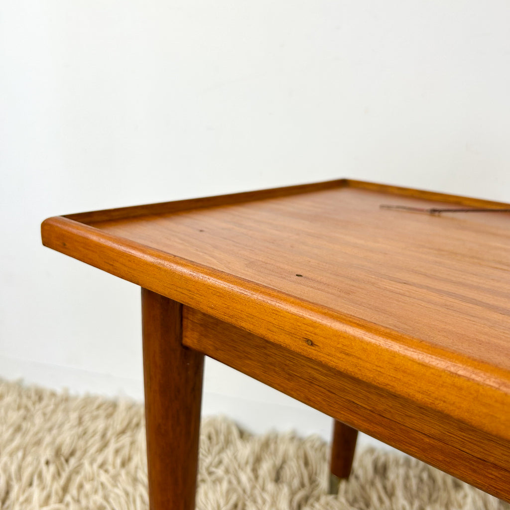 Sweet vintage coffee table. Solid timber with lipped edge and nice tapered legs with metal capped feet.