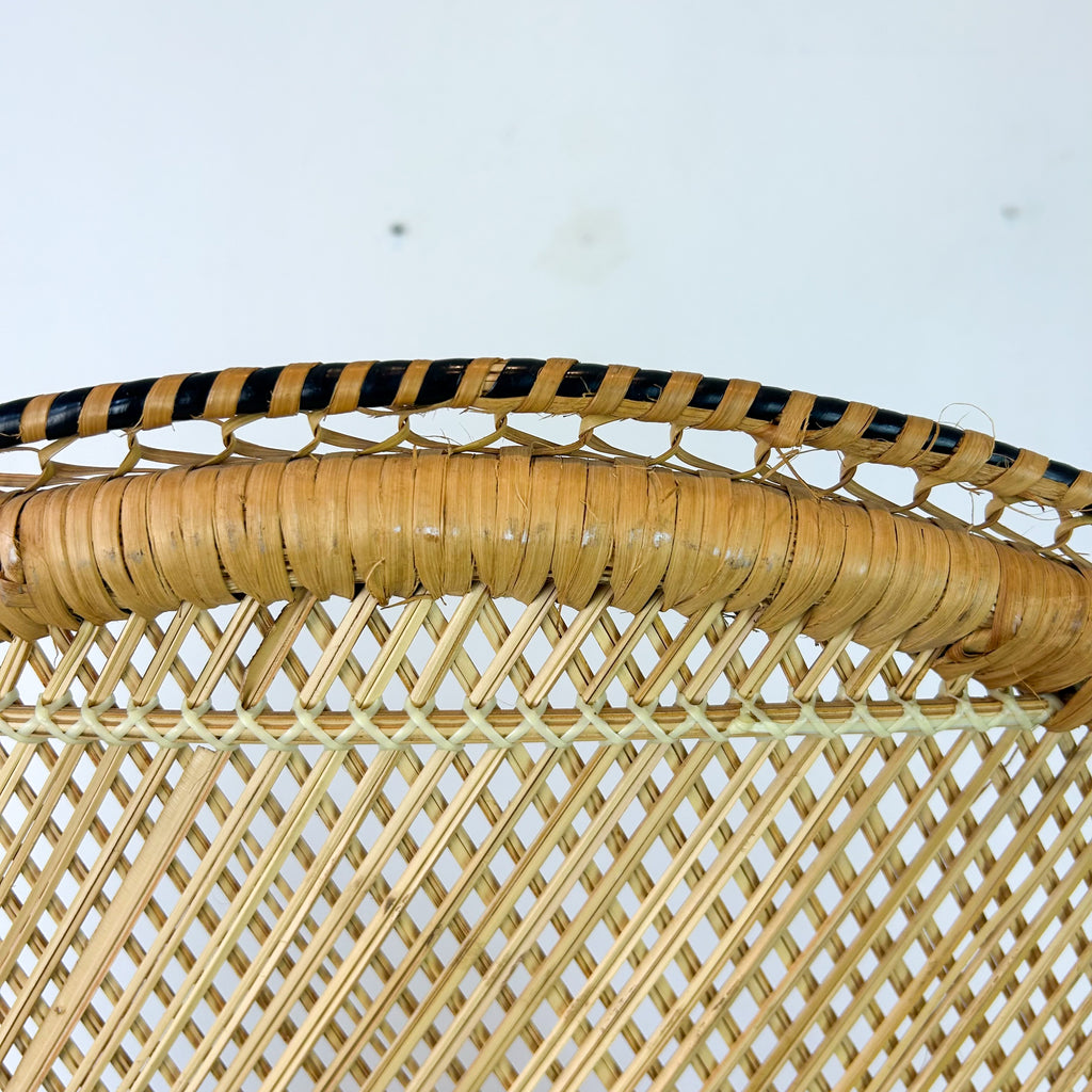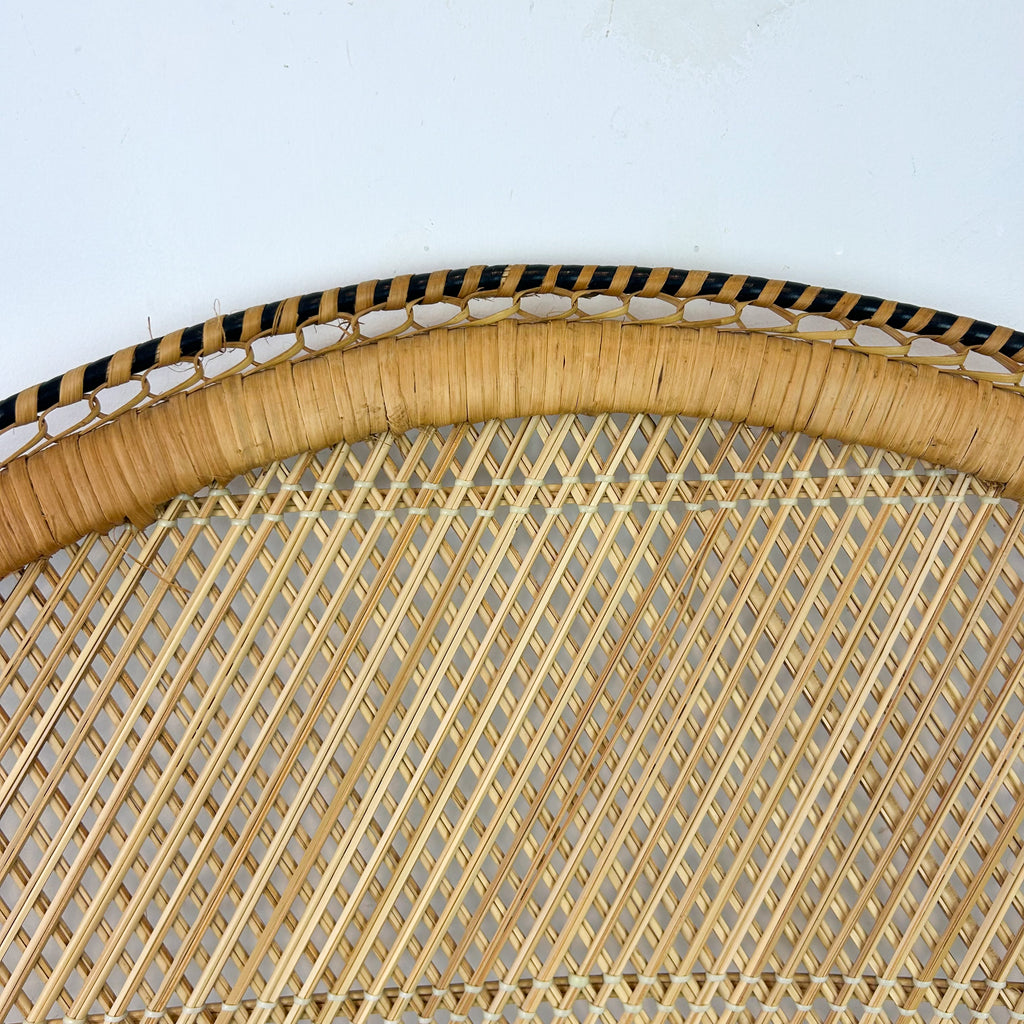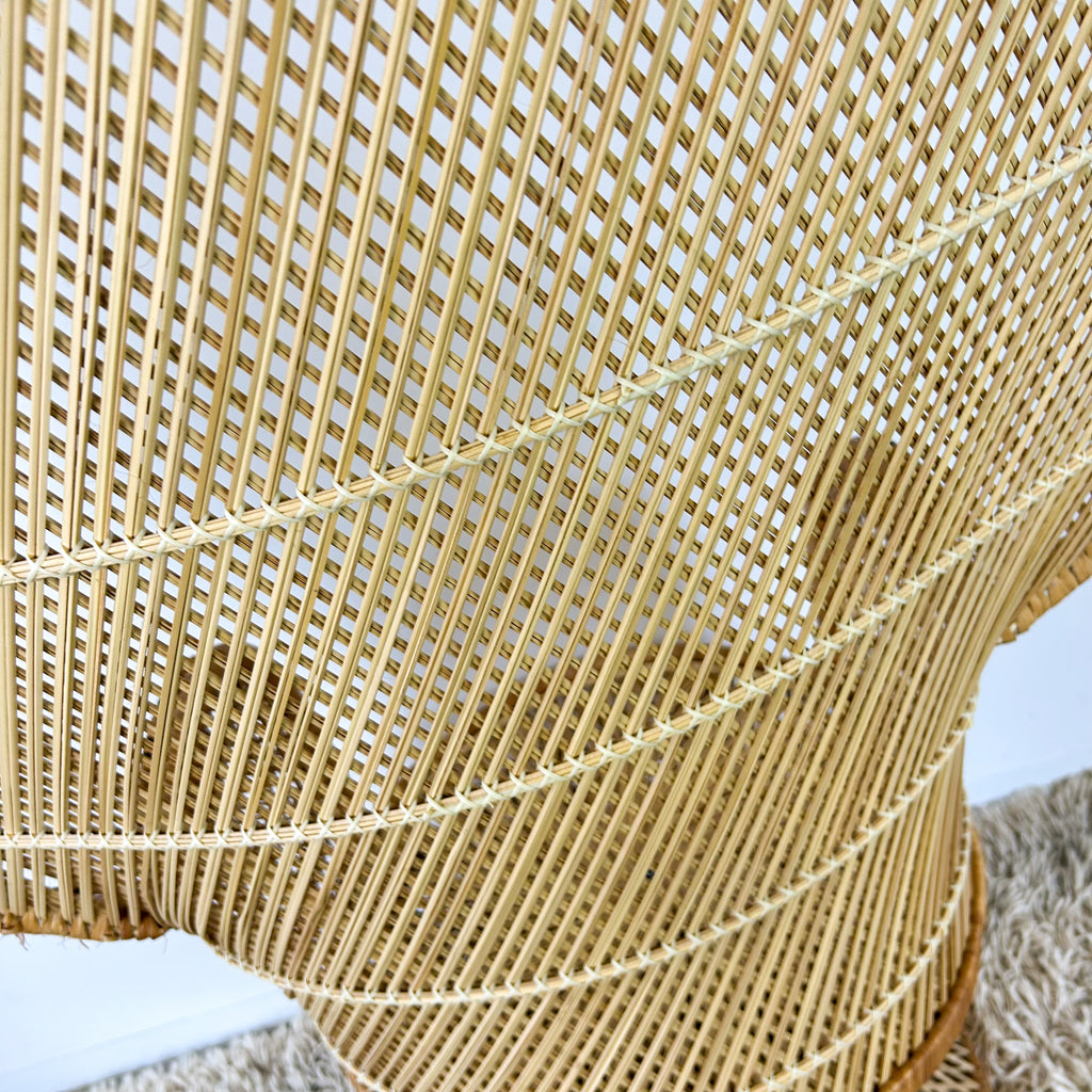 Fabulous vintage cane peacock chair with oversized seat back and twisted base. An icon of the 1970s.