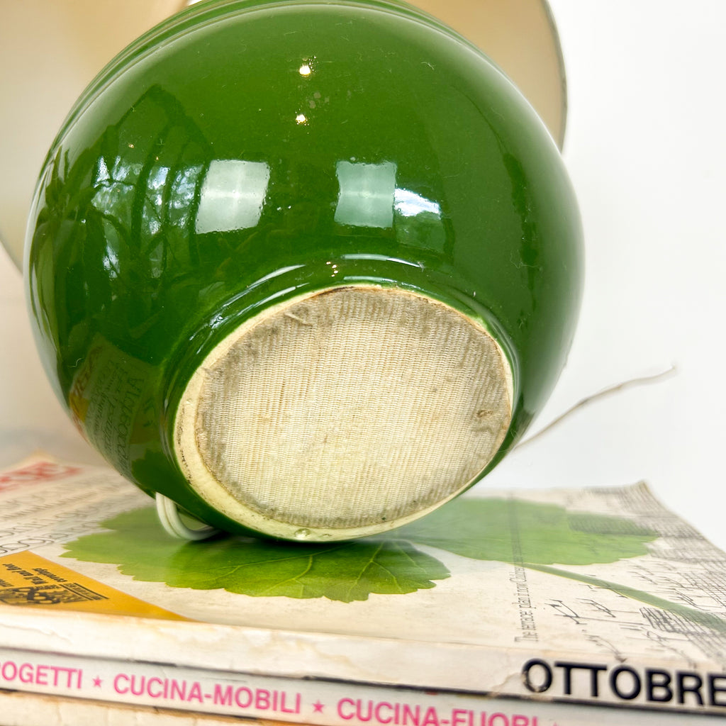 Vintage table lamp, green glazed ceramic base & neutral cone shade.