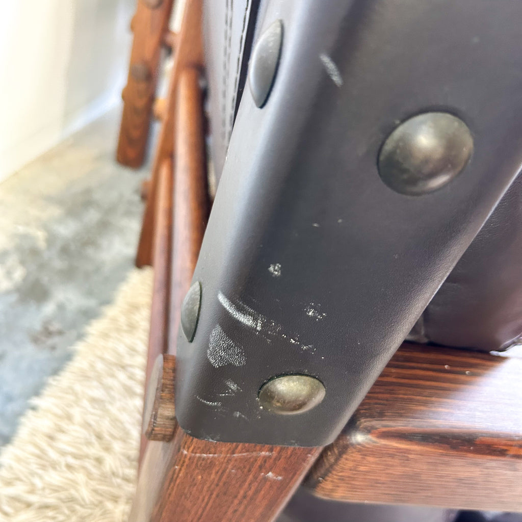 They're in wonderful original condition. The frames have various scuffs & marks and show light wear, as expected. The leather is just beautiful. No damage.